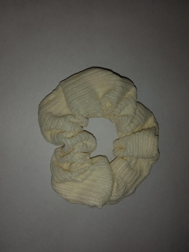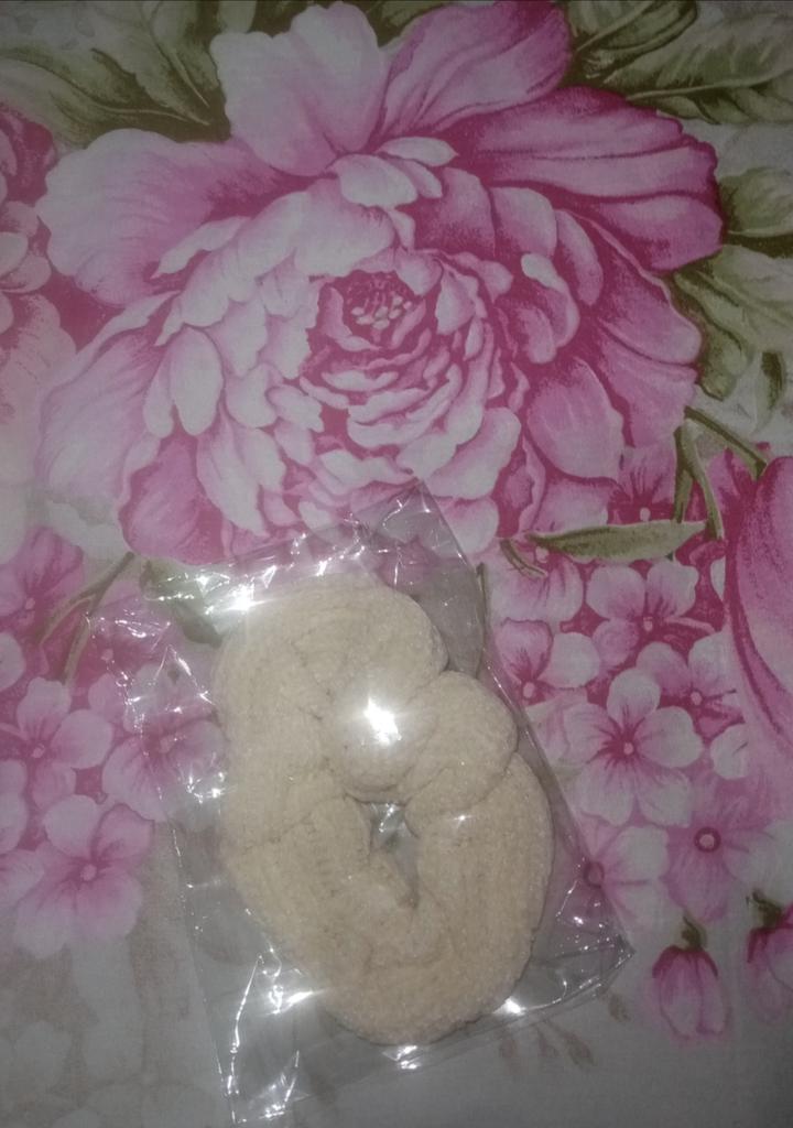 Резинка молочного цвета, хоть на ощупь не такая бархатистая, как может показаться на первый взгляд, но при носке на руке и на волосах выглядит эстетично. Также волосы держит хорошо. Не учитывая странный материал, покупкой я довольно