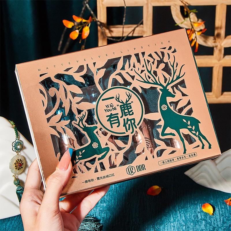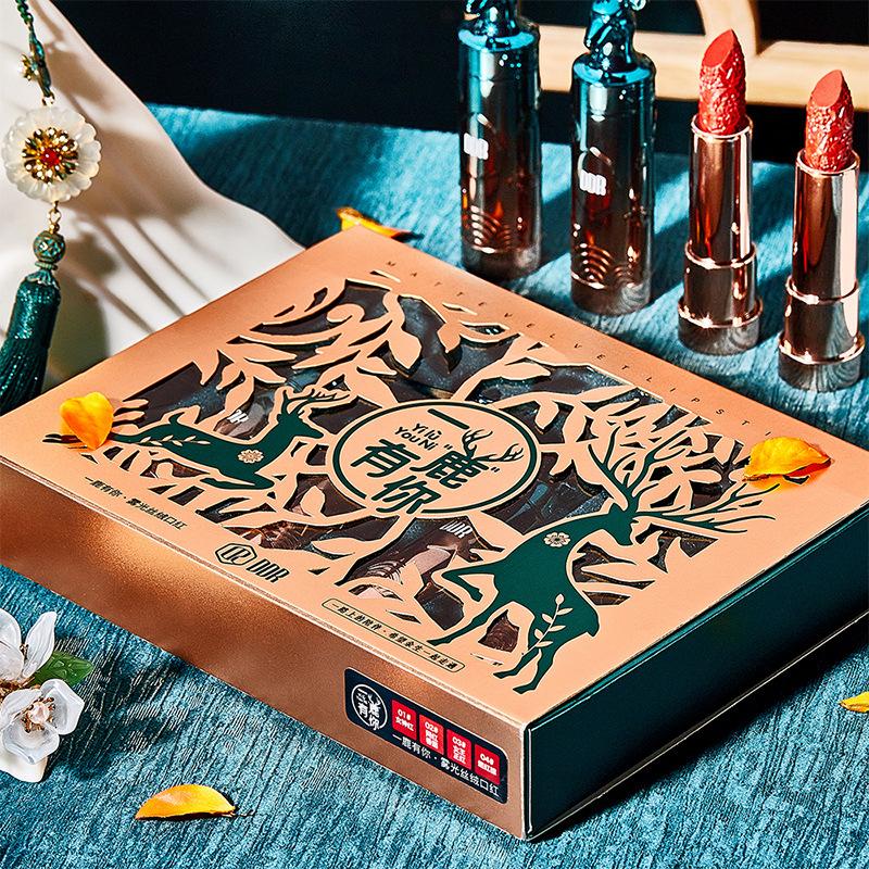 Четыре красных костюма притворяются рождественскими противотуманными фарами, увлажняющими бархатными губными помадами в виде круглой трубки для лося