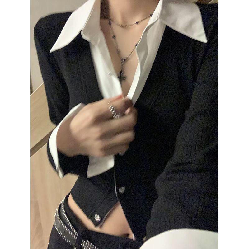 Y2k винтажная черная укороченная рубашка женская корейская модная уличная одежда шикарная тонкая крутая блузка женский эстетический укороченный топ в стиле Харадзюку