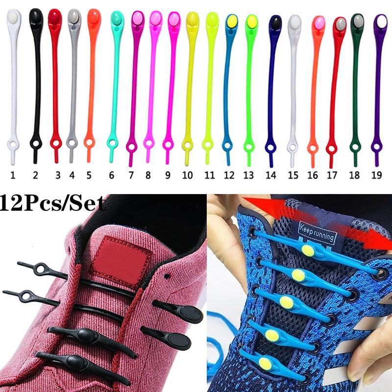 12 шт., модные шнурки для обуви для женщин и мужчин, силиконовые шнурки для обуви унисекс, однотонные эластичные шнурки для кроссовок