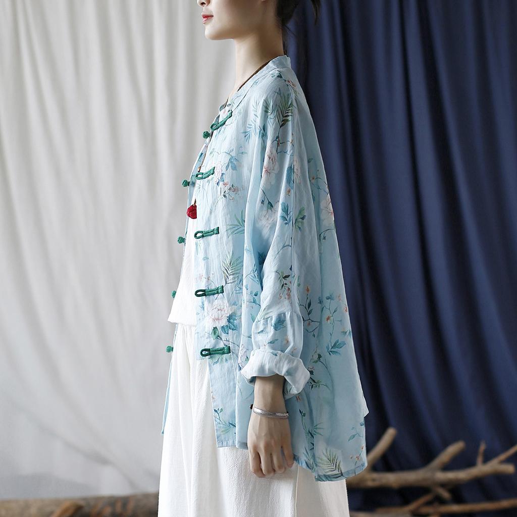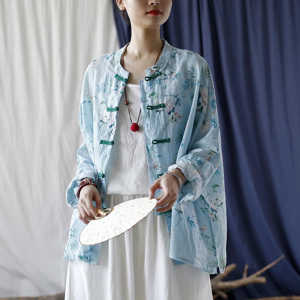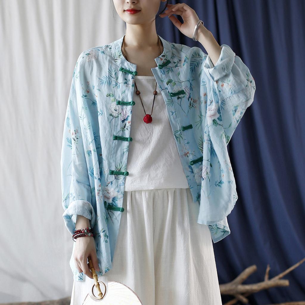 Johnature Женские винтажные рубашки с цветочным принтом, топы с рукавами-летучей мышью и пуговицами, блузки в китайском стиле, свободные женские рубашки