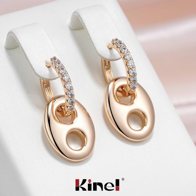 Kinel свиной нос натуральный циркон висячие серьги для женщин цвет розового золота изысканные ювелирные изделия