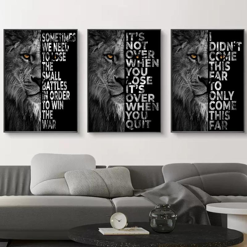 Вдохновляющая цитата, черно-белый постер с изображением льва, скандинавский холст, картина с изображением животного, настенная художественная картина для современного дома, декор для гостиной