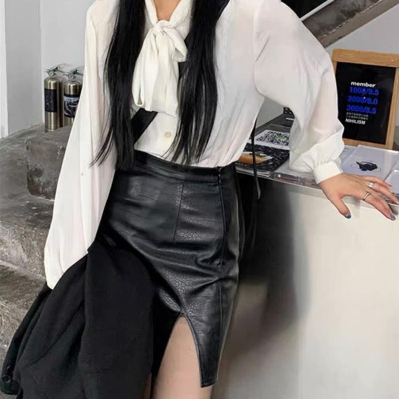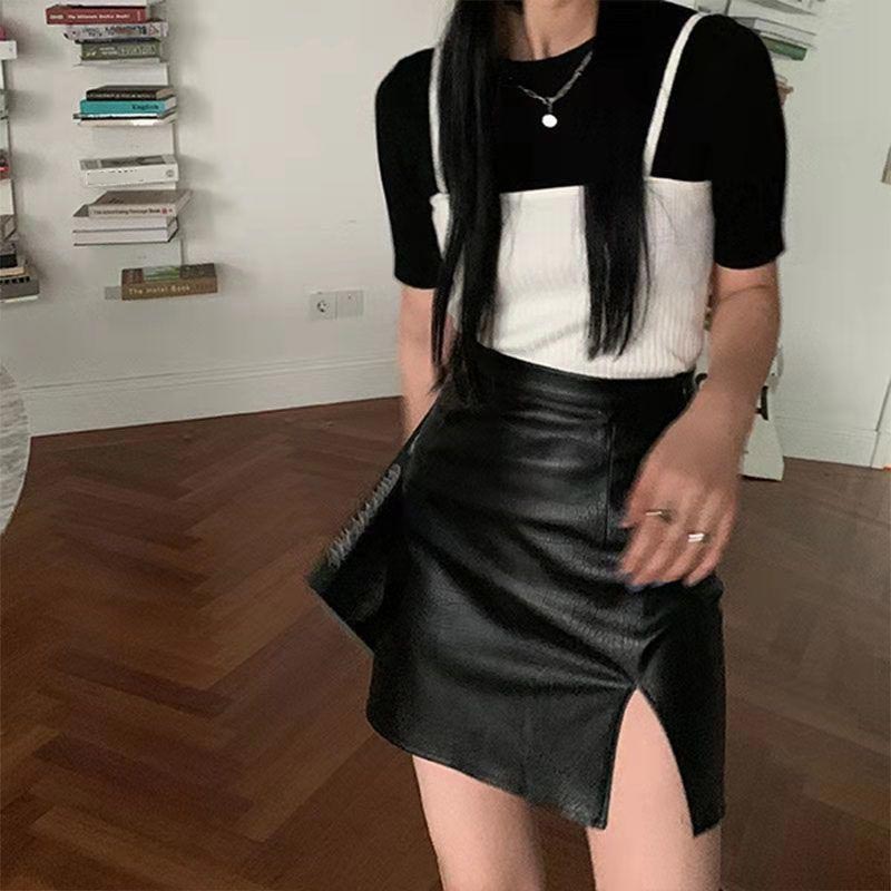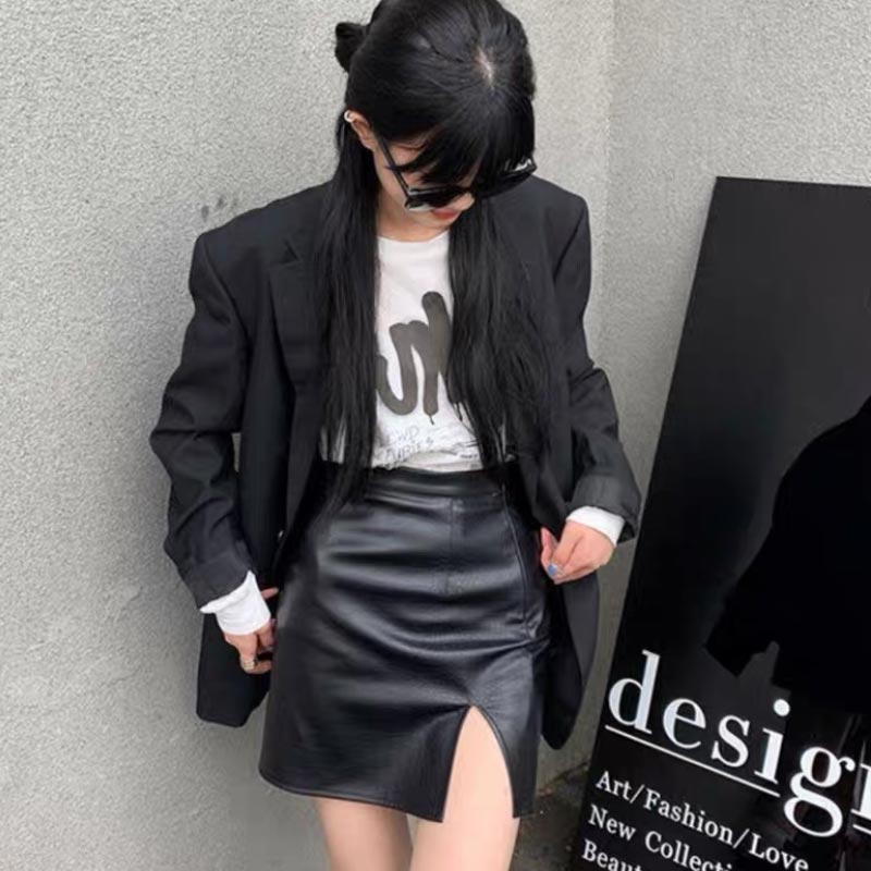 Черные юбки из искусственной кожи, женские сексуальные тонкие юбки трапециевидной формы с высокой талией, весенне-летние корейские модные женские низы, деловая одежда