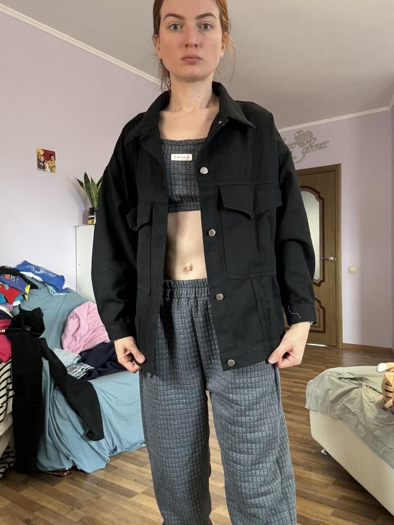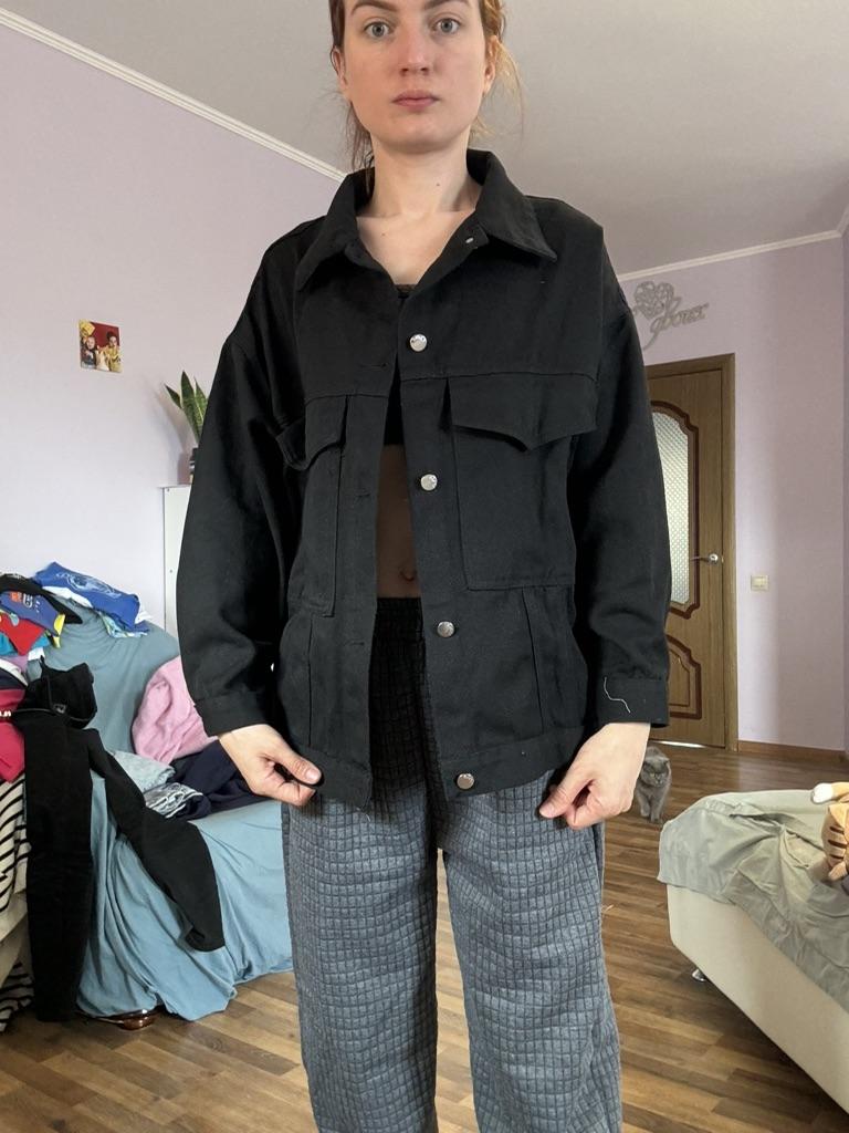 На мне размер L! Мои параметры 174 рост, ог 84, от 64, об 91см , смотрится очень достойно, пришла как-будто напшиканная духами, заказ ехал очень долго. Не помню когда точно заказала, отправлено 27.02.24 и прибыло 12.04.24, вчера забрала 14.04.24, сегодня уже постирала при 30 на быстрой стирке 30 минут с черной лаской, на всякий. Все хорошо, запах пропал, куртка цела, осталось подрезать ниточки и отпарить. Цвет прям насыщенный черный, на фото продавца, как мне кажется , более серый. Обратите внимание, где карманы куртки находятся, они не в привычном месте (см.фото) за бардак извините, оцените куртец! Я довольна, за такую цену (1815 руб) - я довольна! Долгая доставка конечно!