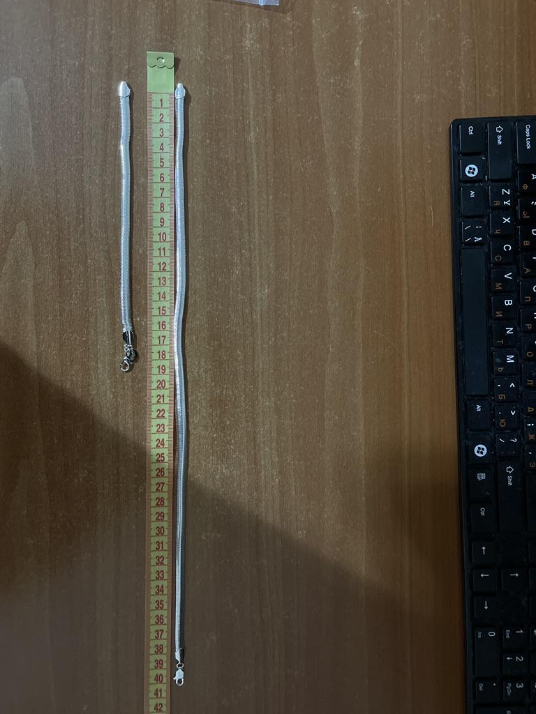 Товар не совсем соответствует описанию , к сожалению длина браслета не соответствует , цепочки почти соответствует указанному . На фото видно так длина браслета заявлена 20 см , а фактически 18 см , цепочка заявлена 40 см , почти дотягивает , все видно на фото . Само качество не плохое , даже стоит проба 925 , хотя тоже очень сомнительно . Как бижутерию могу рекомендовать к покупке , товар стоит своих денег . Спасибо продавцу и Джуму !