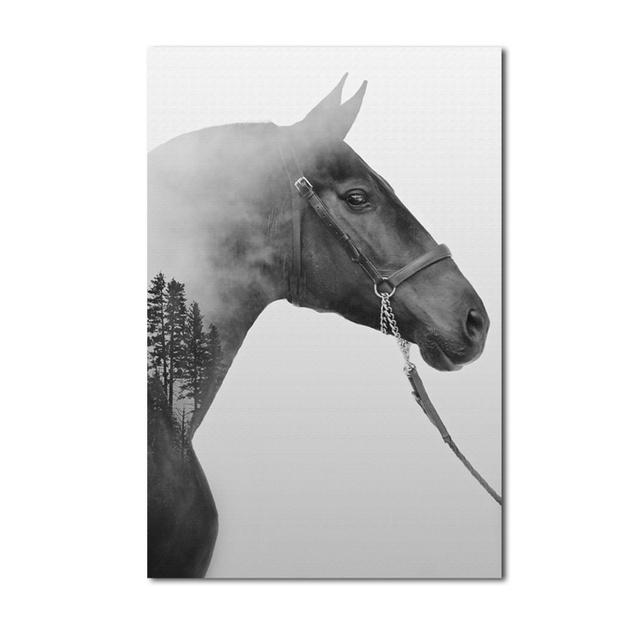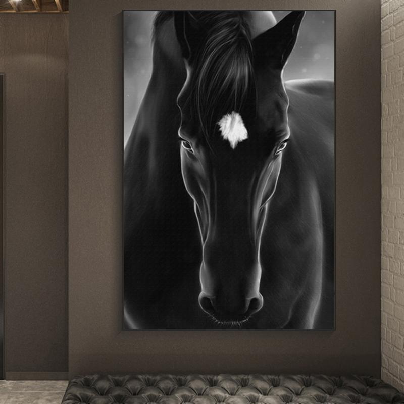 Черно-белая лошадь, картина маслом, украшение стены, искусство, животное, лошадь, современный постер, украшение для гостиной, спальни