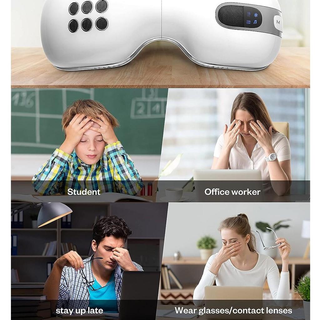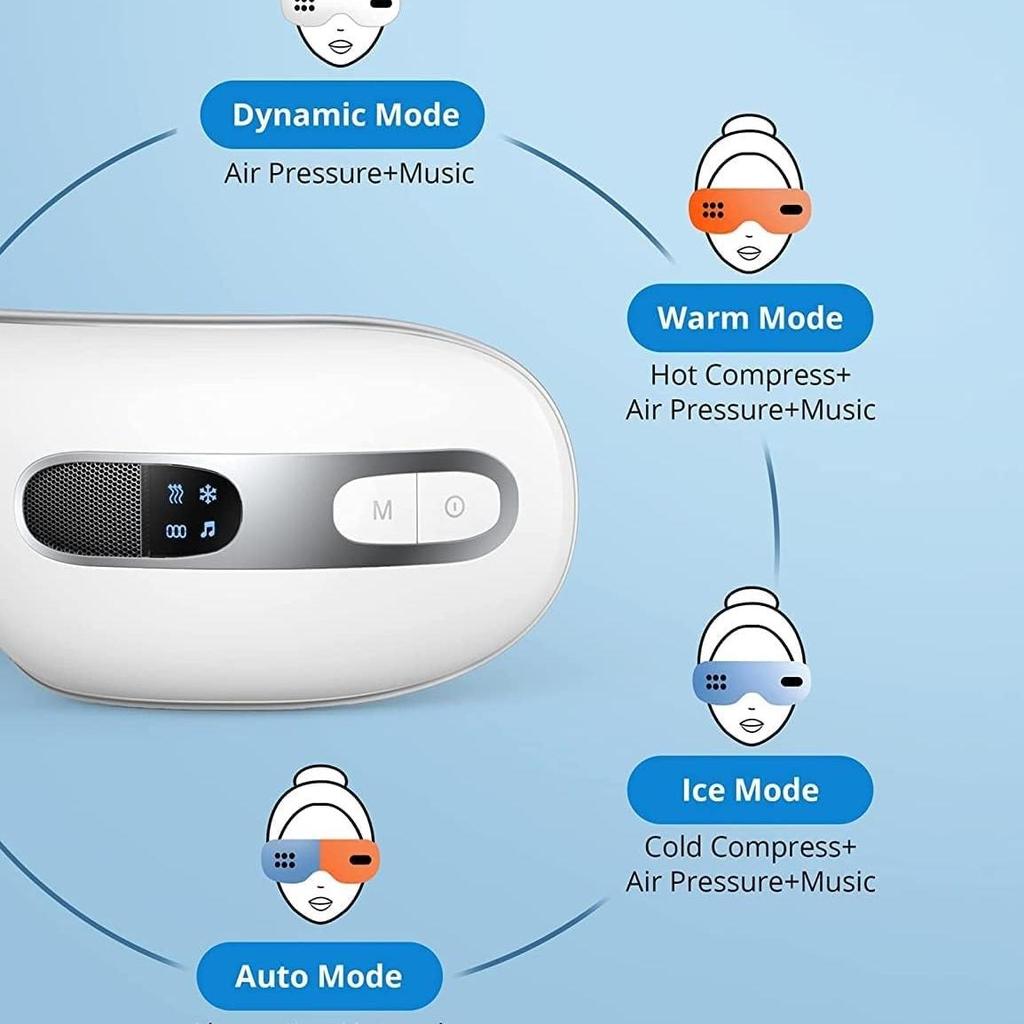 Сжатие воздуха - наш массажер для глаз предлагает регулируемые уровни давления воздуха, поэтому вы можете наслаждаться сильным или мягким массажем. уведомление: Не рекомендуется людям с заболеваниями глаз или недавно перенесшим операцию на глазах