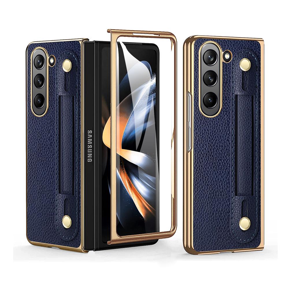 Удобный кожаный чехол в деловом стиле для Samsung Galaxy Z Fold 5 5G Z Fold4 3 2, защитная пленка для экрана, браслет, чехол