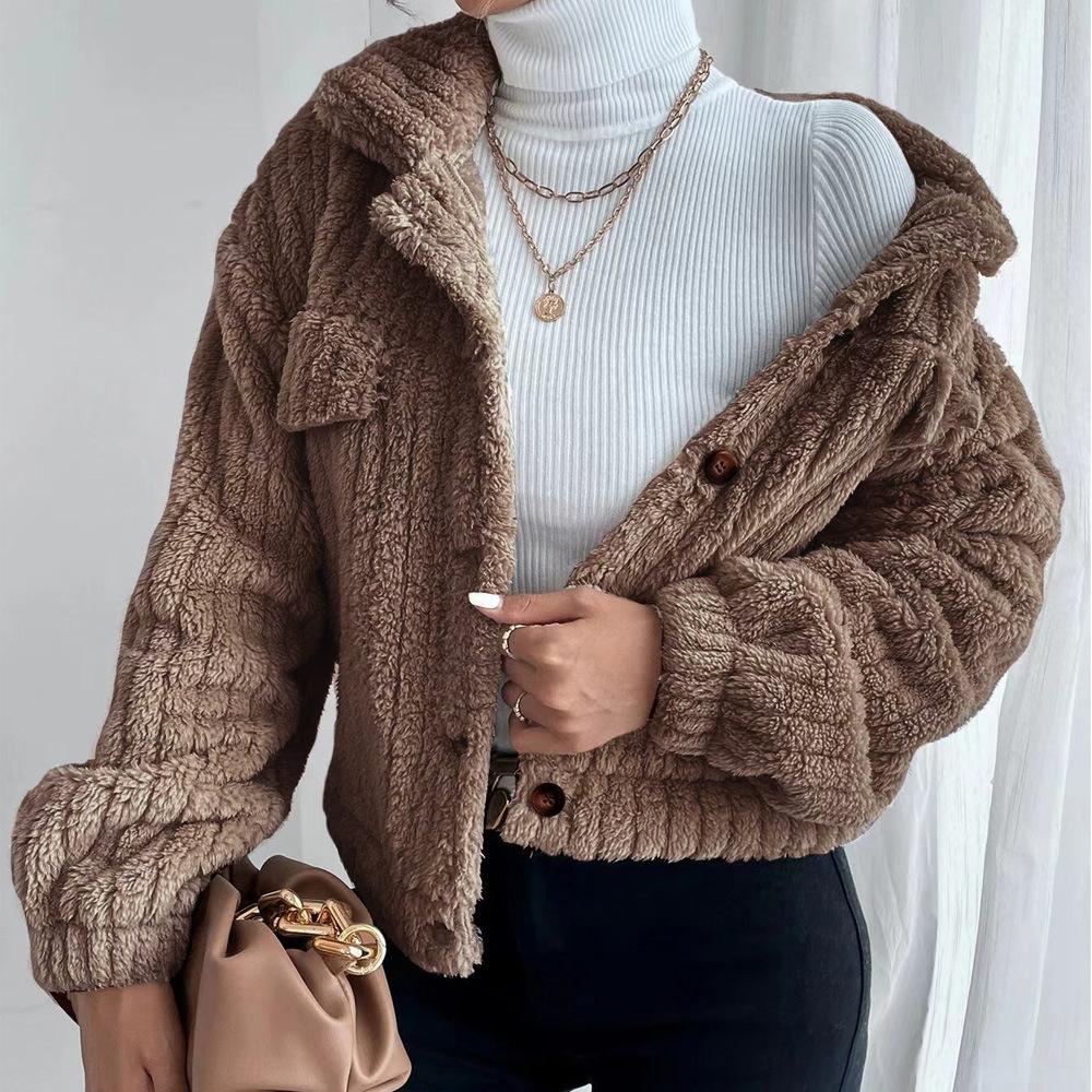 Женская плюшевая куртка из искусственного меха, плотное пальто, повседневное свободное пальто с длинными рукавами, женская верхняя одежда, осенне-зимнее женское пальто на пуговицах