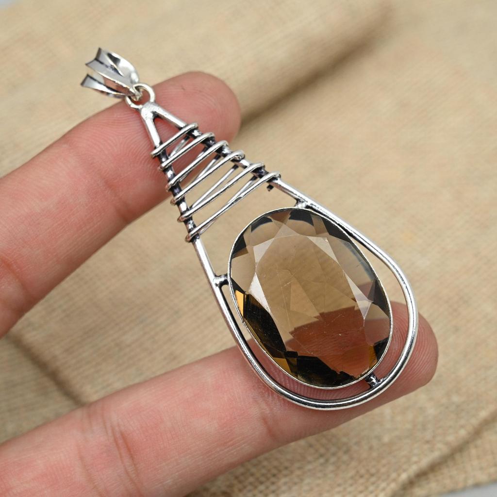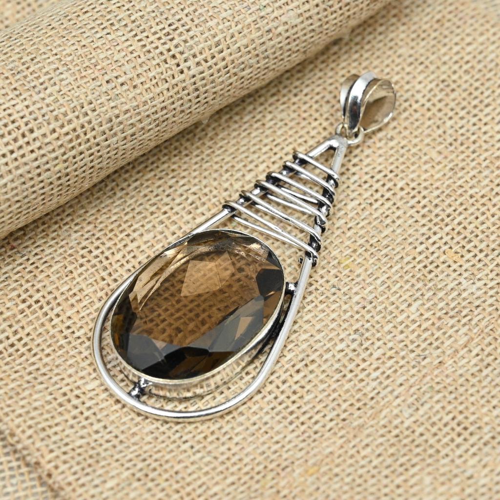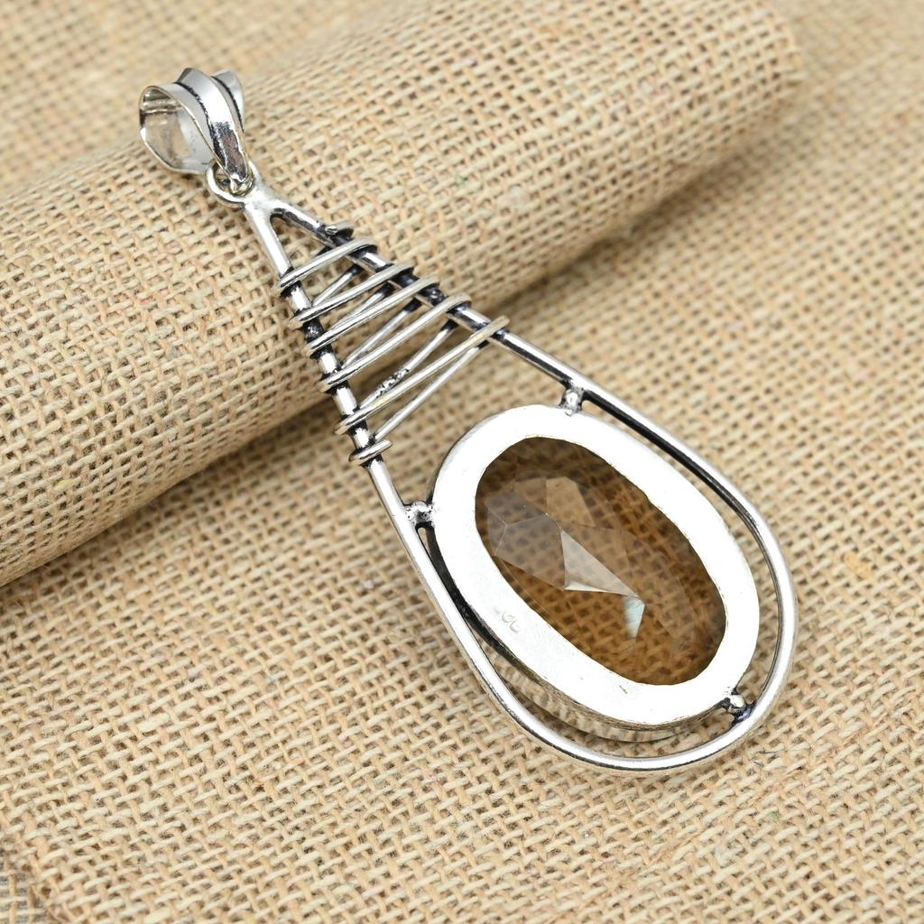 Дымчатый топаз, твердое серебро 925 пробы, замечательный драгоценный камень овальной формы, подвеска ручной работы, ювелирные изделия