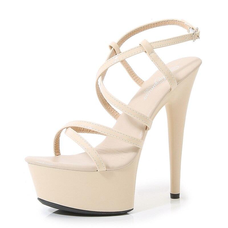 Женские бежевые водонепроницаемые сандалии на платформе с завязками Красного Креста на высоком каблуке 15 см, танцевальная обувь LFD-8661-55