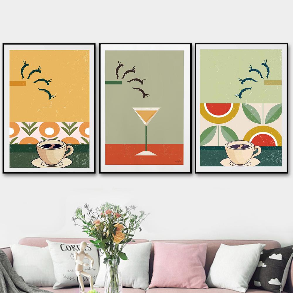 Винтажный Дайвинг Коктейль Кофе Интересный Абстрактное Настенное Искусство Холст Картина Плакат