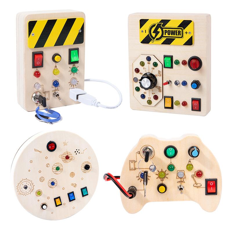 Детская деревянная доска Монтессори со светодиодной подсветкой, сенсорные образовательные мероприятия, путешествия для малышей, От 1 до 3 лет, тумблер