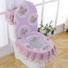 Набор из трех предметов для унитаза из синели, садовая кружевная ткань, подушка на сиденье унитаза на молнии, чехол на сиденье унитаза, кольцо