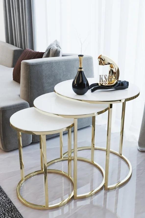 EPeddler Home 3-местный журнальный столик из белого золота, закаленное стекло