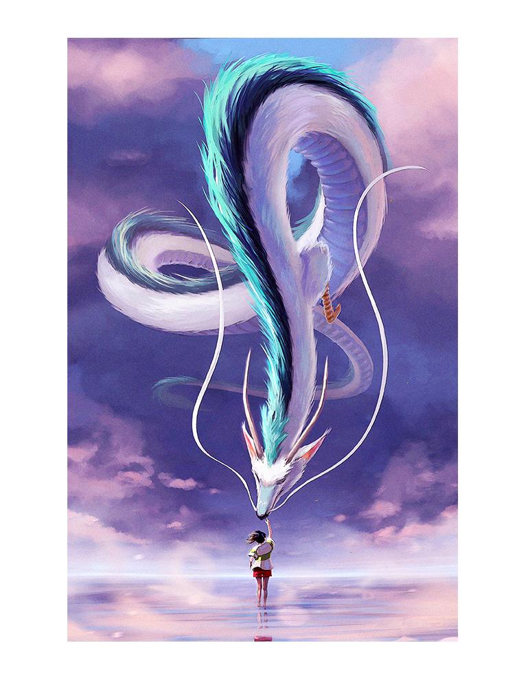 Японский аниме-фильм «Унесенные призраками», постер, холст, картина, белый дракон, Огино Тихиро, настенное искусство, украшение для гостиной, дома, Куадрос — купить товар онлайн с бесплатной доставкой по всему миру!