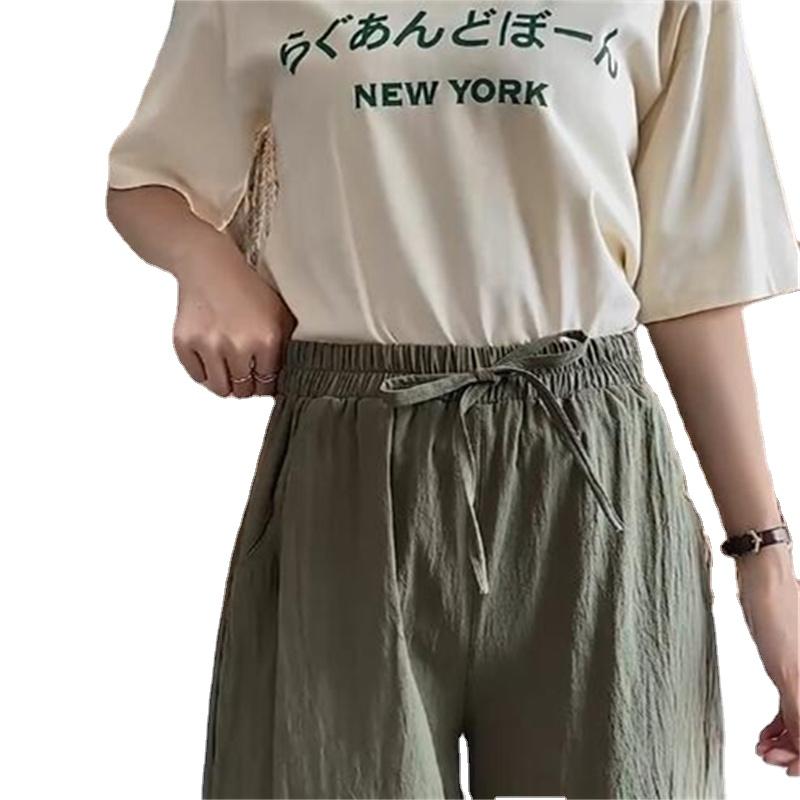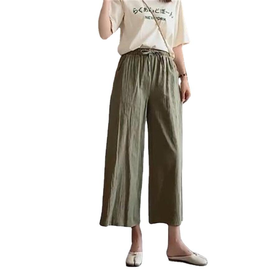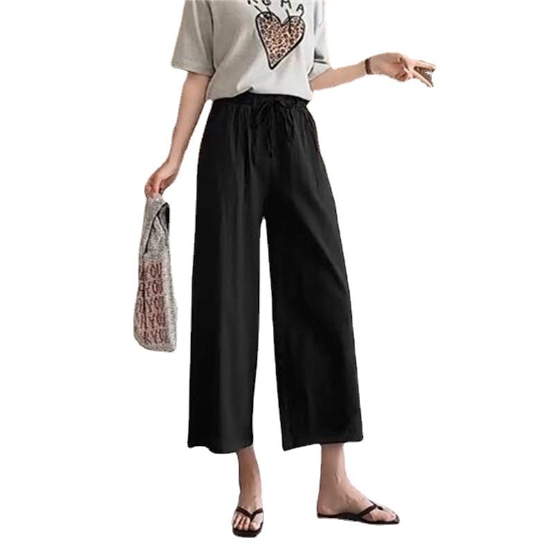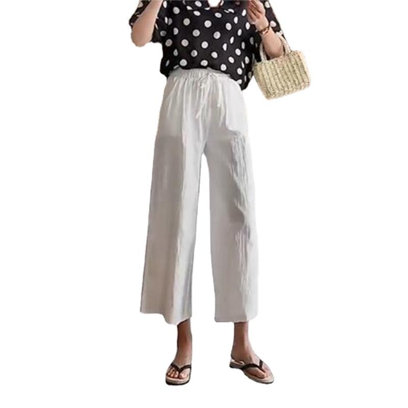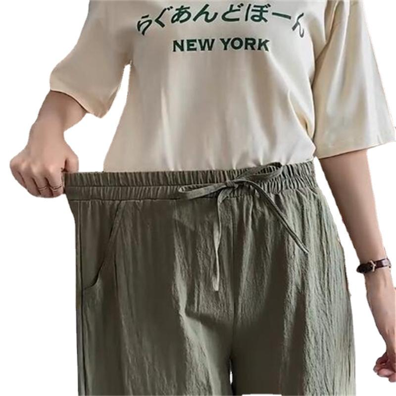 Широкие брюки для женщин, летние хлопковые льняные брюки, однотонные дышащие свободные брюки с эластичной резинкой на талии, большие размеры