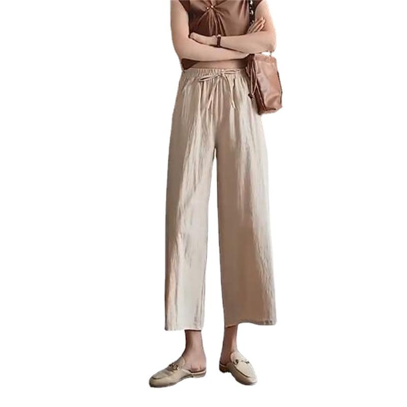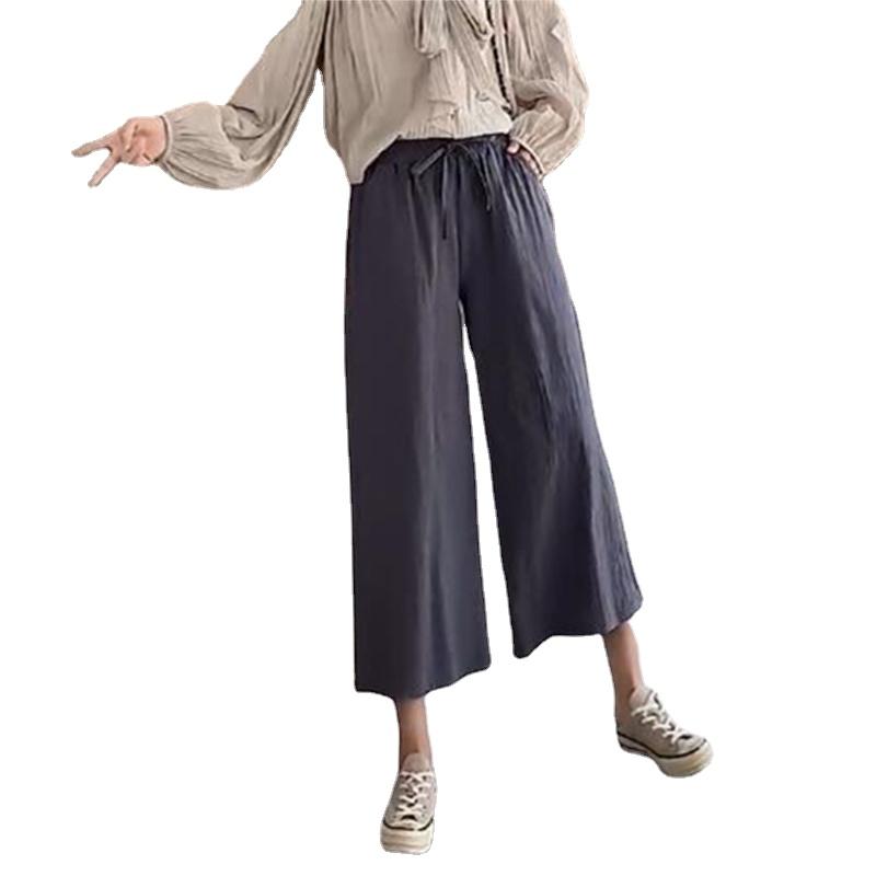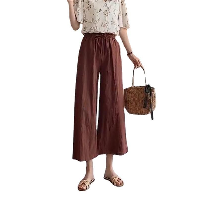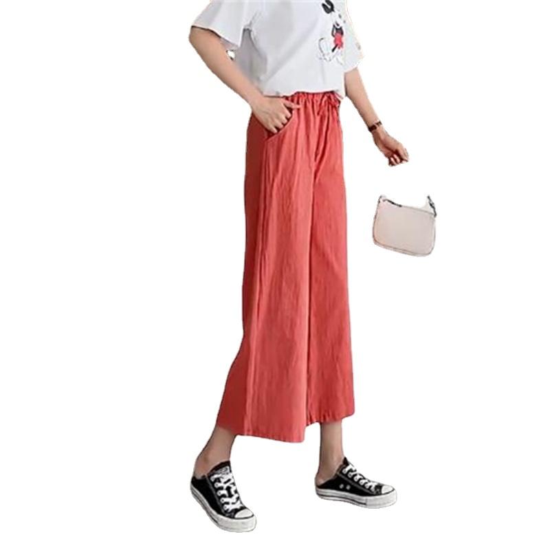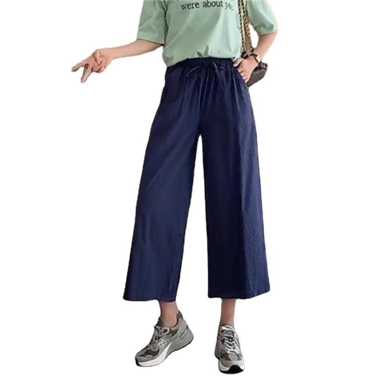 Широкие брюки для женщин, летние хлопковые льняные брюки, однотонные дышащие свободные брюки с эластичной резинкой на талии, большие размеры