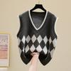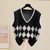 Винтажный вязаный свитер в клетку Argyle, жилет, женские пуловеры без рукавов с v-образным вырезом, жилеты, свитера, повседневный свободный трикотаж, жилет 29065