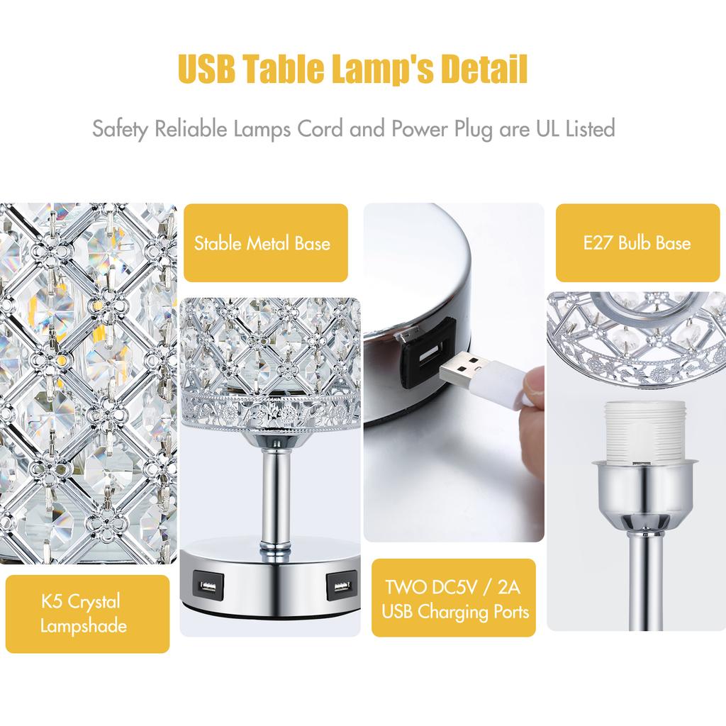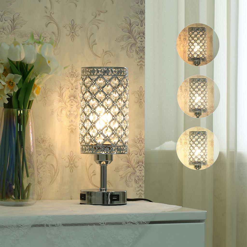 Tomshine Хрустальный настольный ночник рядом с лампой, два USB-порта, 3 уровня яркости с регулируемой яркостью