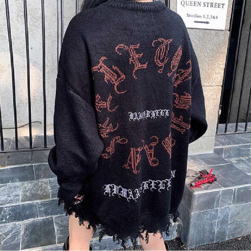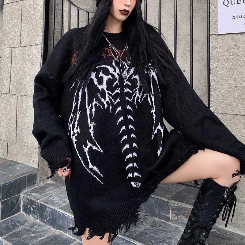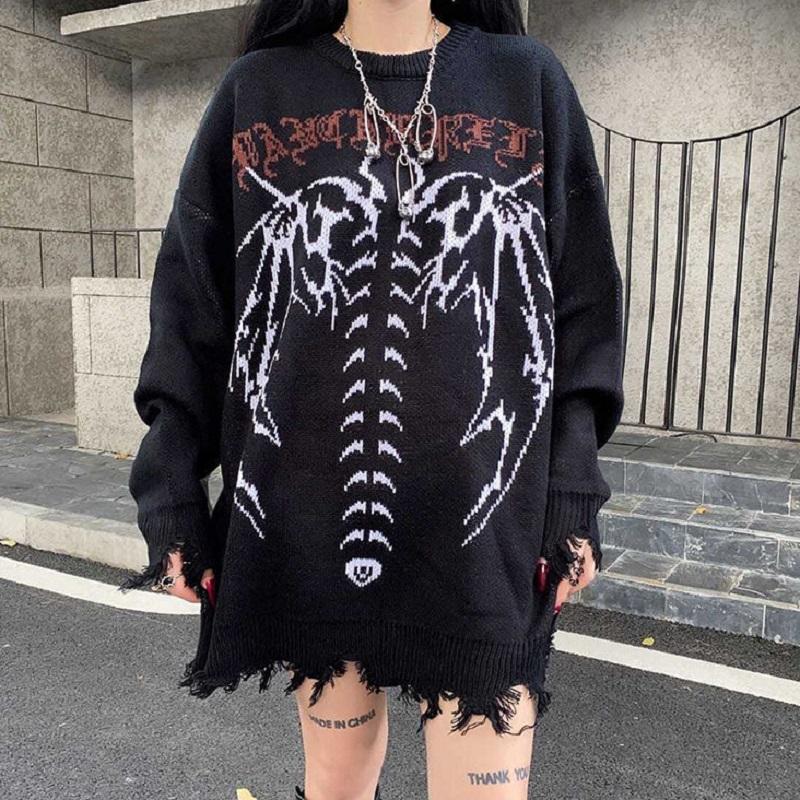 Готический стиль, панк, вязаный свитер, женский оверсайз, уличная одежда в стиле хип-хоп, торговый центр, готический череп, серый модный пуловер, джемпер, топы