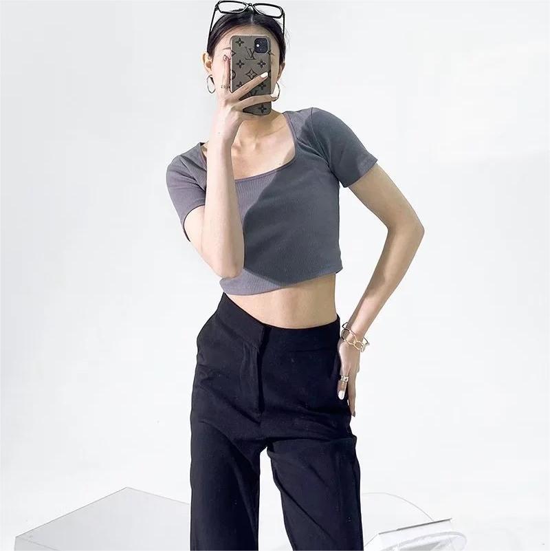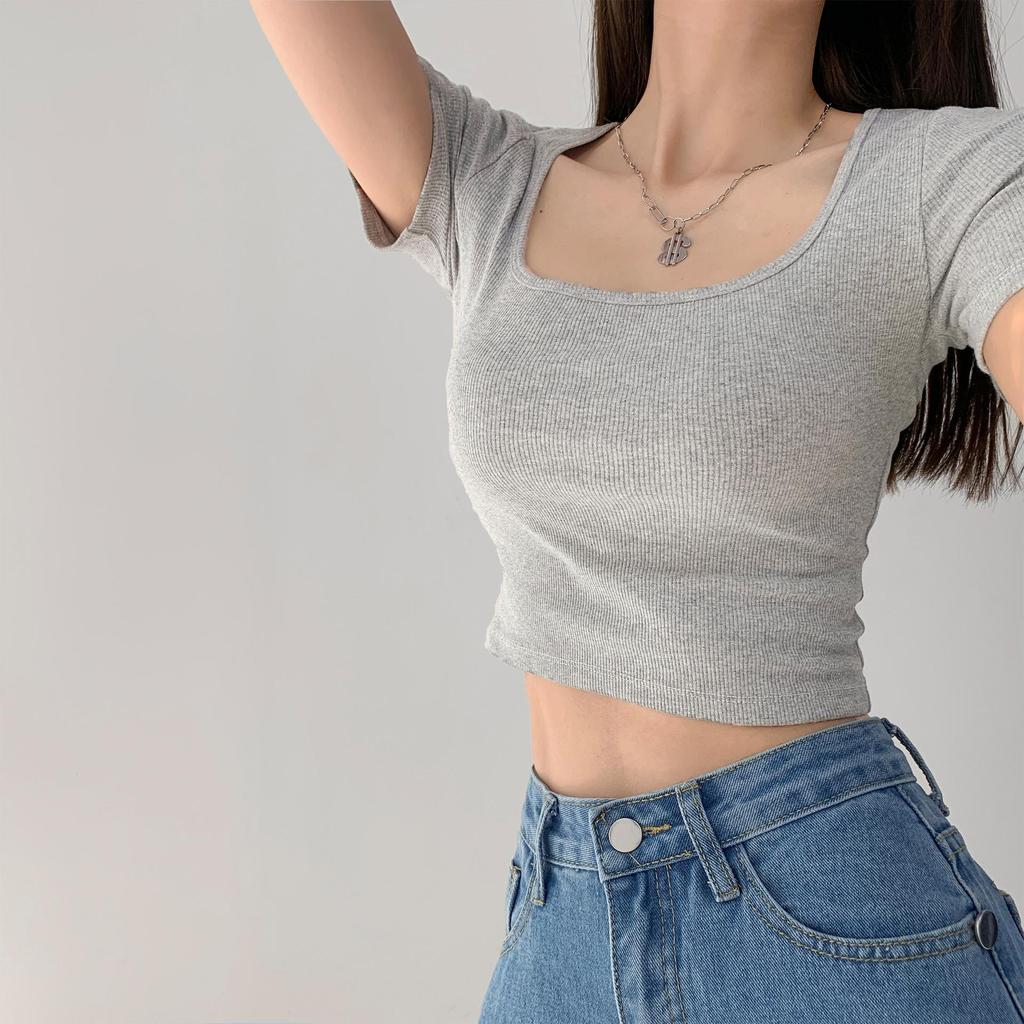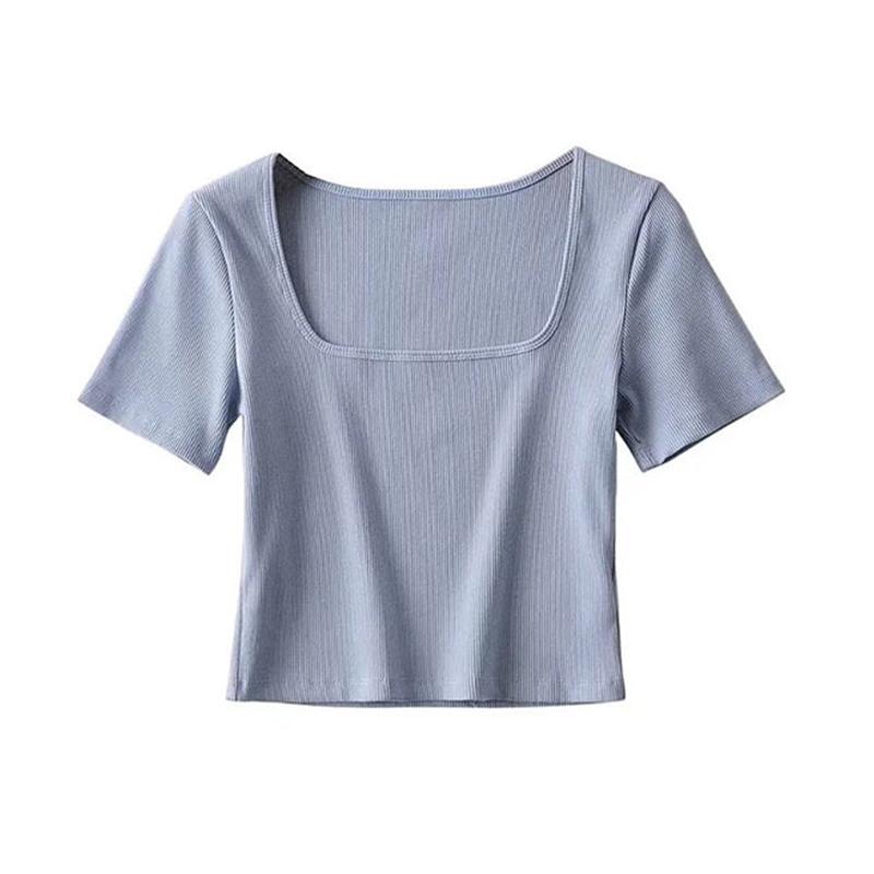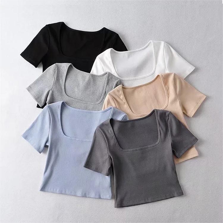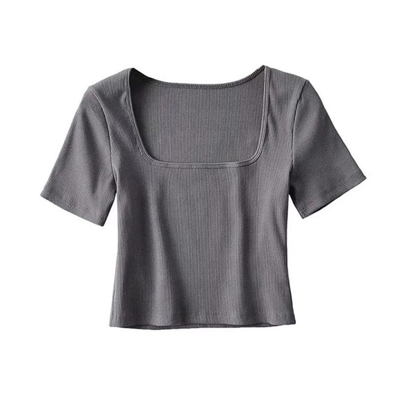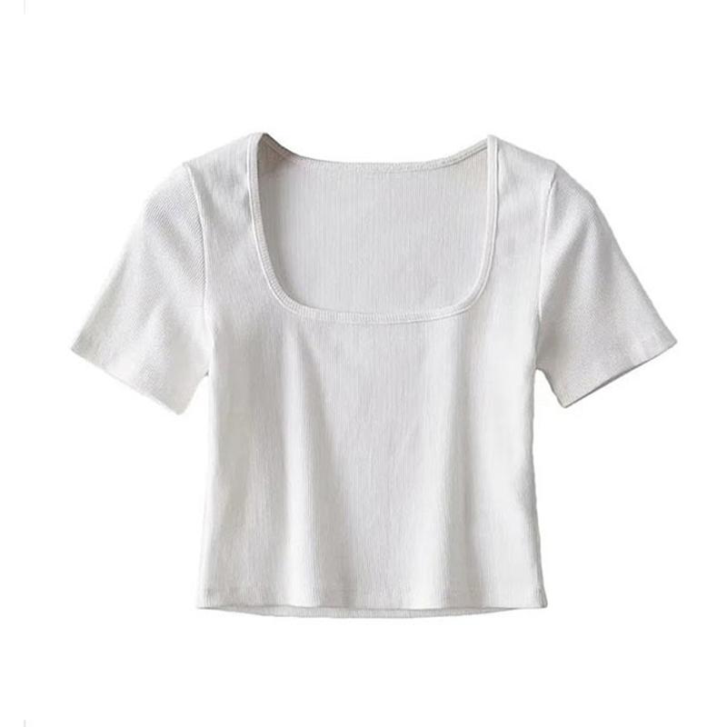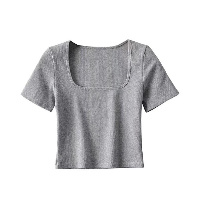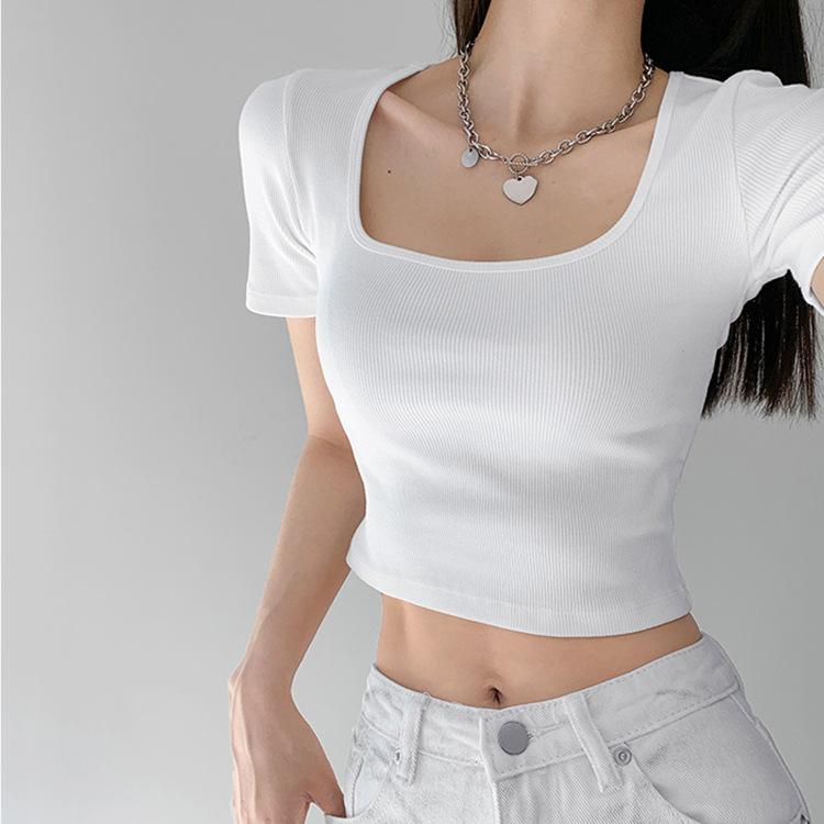 Женская укороченная футболка с квадратным вырезом и коротким рукавом