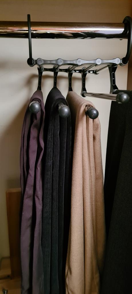 Задумка хорошая. Удобно вешать брюки и можно по штучно выдвигать каждую вешалку-трубочку вперёд. Но снята звезда за хлипкость матеииалов и за то что детали(трубочки) были в нескольких местах замяты. Товар хочется получать в хорошем виде.