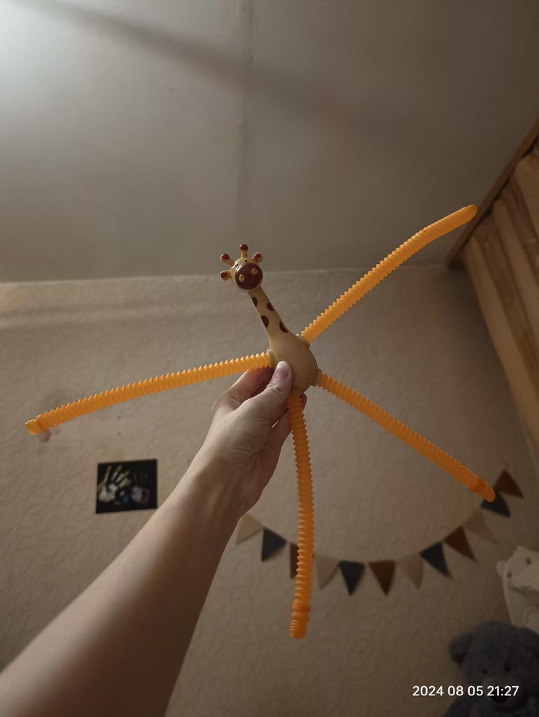 Жираф на присоске) Цена копейки 148₽ Дочке очень понравился) Присоски я сняла, для безопасности, т.к до года ребёнок может их оторвать.. В принципе потом можно обратно на клей пистолет приклеить) Для 7 месячного малыша интересное занятие, растягивать жирафика)) Потом ещё собачку возьмём))