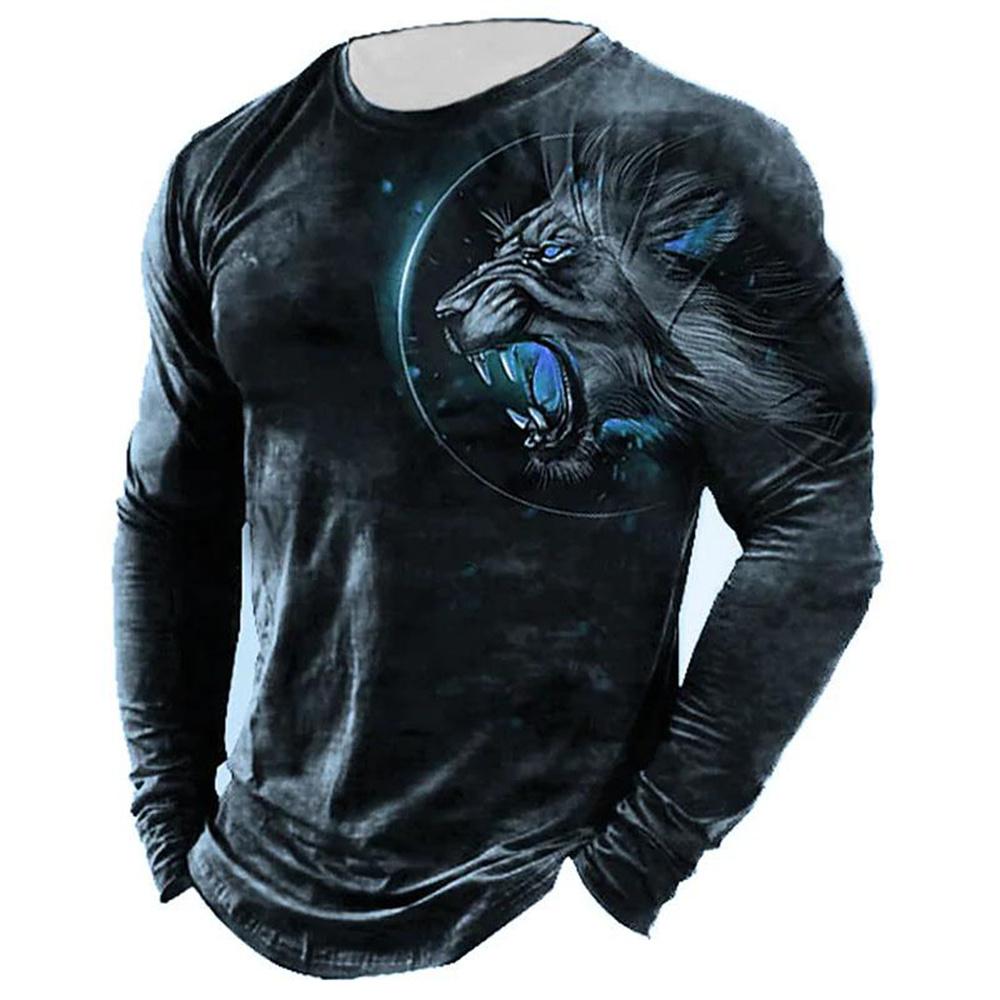 Футболка в стиле ретро, мужская футболка с длинными рукавами и 3D принтом льва, 2022 г., мужская одежда оверсайз, повседневная футболка с круглым вырезом, мужская футболка, уличная ткань