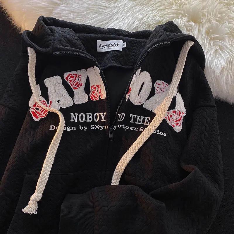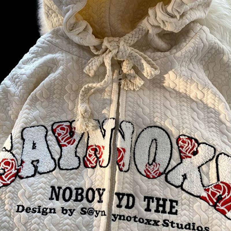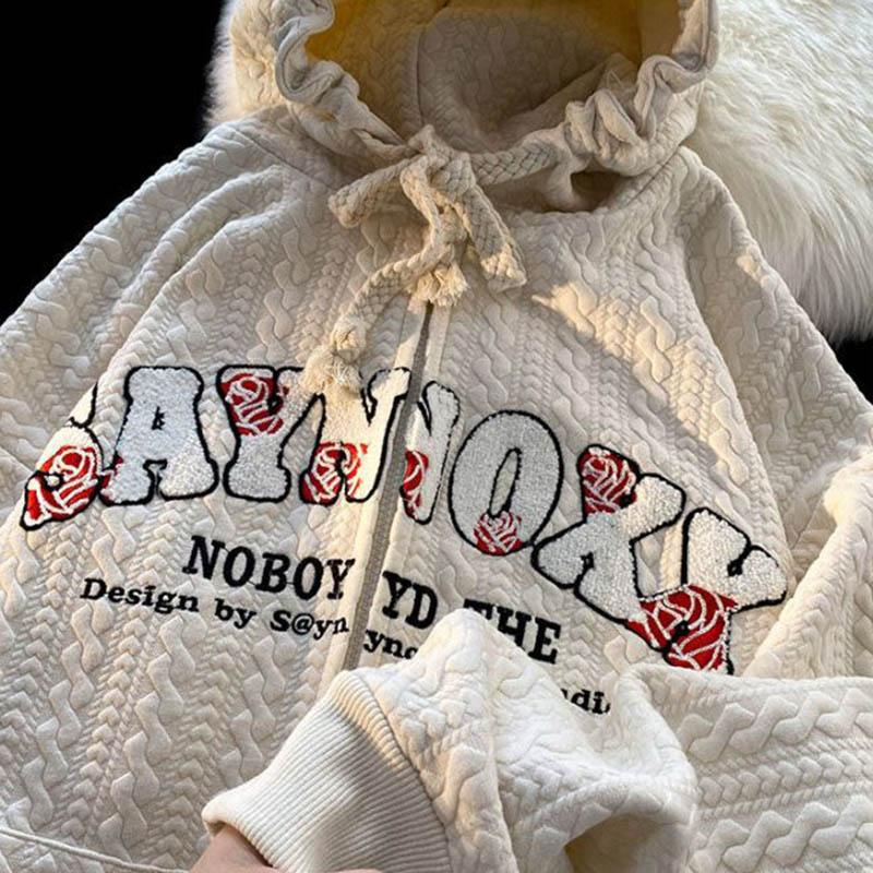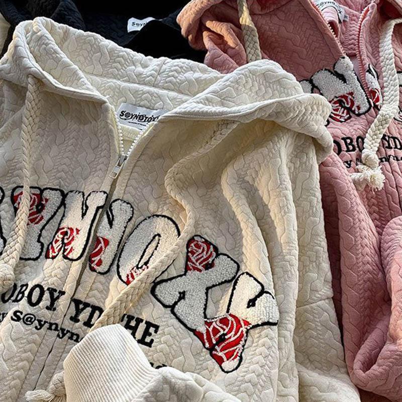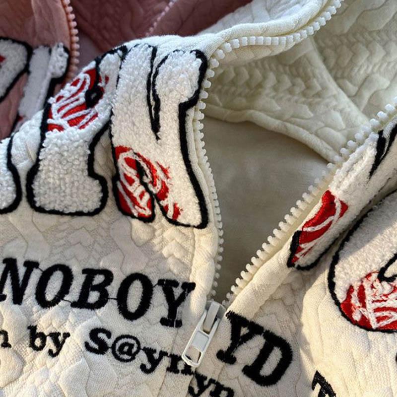 Женская куртка с капюшоном на осень и весну, свободная мягкая повседневная куртка на молнии с длинными рукавами и карманами с буквами
