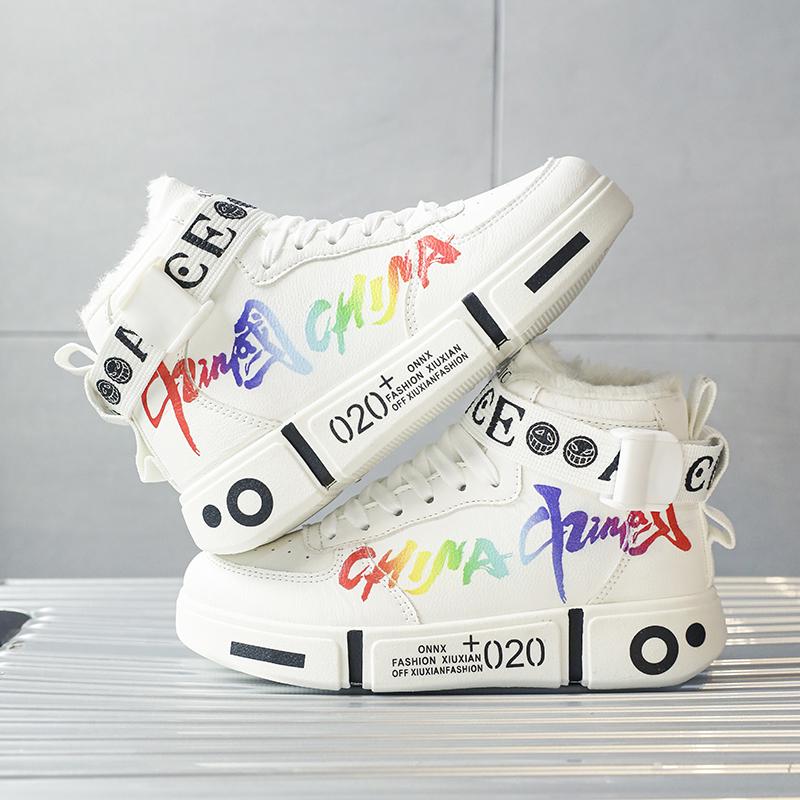 Детская зимняя теплая обувь, спортивная обувь, обувь для скейтборда в стиле аниме с граффити, повседневная обувь, обувь для родителей и детей