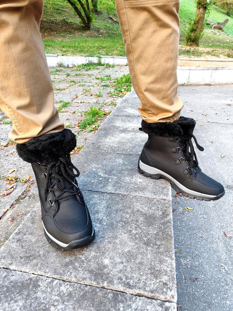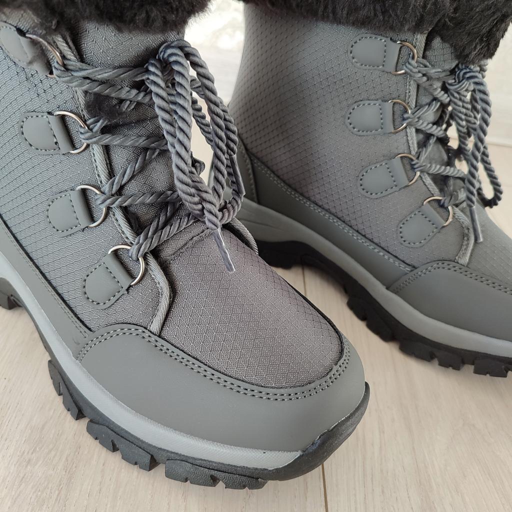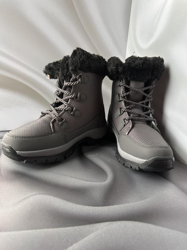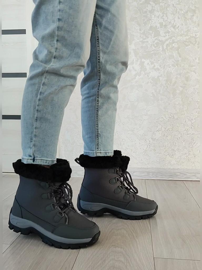 Тёплые и удобные зимние сапоги, модель унисекс, широкий размерный ряд. Доставка заняла чуть больше месяца до почтового отделения Укрпочты, сборная посылка Joom. В магазине на выбор 3 варианта расцветки сапог, я выбрала серые, смотрится отлично. На стопу 26 см, я заказала размер 42, сапоги подошли отлично, даже есть запас, измерения стельки: 27 см, но рекомендую на стопу 26-26,5, внутри густой мех, должен быть запас. Внешний материал водоотталкивающий текстиль, а по кругу вставки из ПУ кожи. Внутри густой плюш, отличный и тёплый зимний вариант. Сапоги на шнуровке, молнии нет, но я их не шнурую туго, поэтому на узкую ногу могу обувать не расшнуровуя. Шнуровка очень необычная, металлические петельки, добавляет изюминку дизайну. Подошва достаточно высокая, резиновая, не скользкая, рельефная, что очень важно для гололёда. Для меня эти сапожки - идеальный зимний вариант, они не только тёплые и удобные, а ещё и отлично смотрятся на ноге, гулять зимой с ребёнком - идеально. Качеством я довольна, к покупке рекомендую!