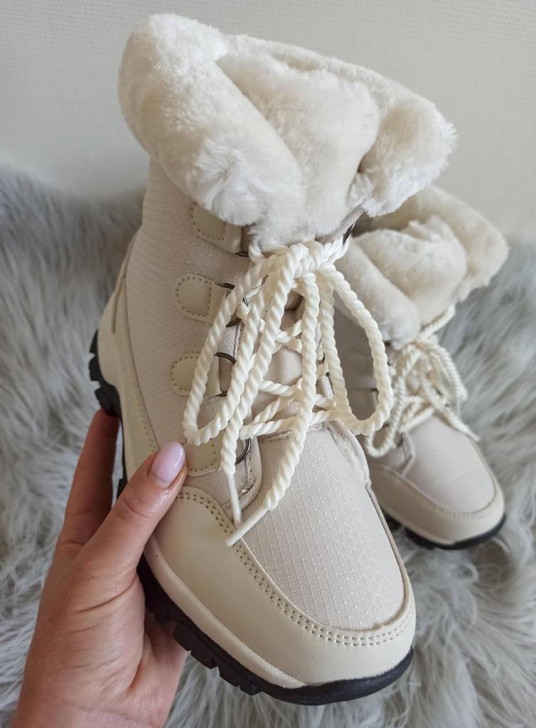 Отличные сноубутсы ❄️ Сразу к делу! Сразу рекомендую! 😁☺️ Мне очень понравились. Добротные, хорошее качество. Очень удобная красивая модель. Теплюсенькие. Мягусенькие. У меня стопа 24,5 см На мне 39 размер. Места дополнительного по ощущениям пару миллиметров, наверное из-за меха, потому что стелька 25,2 см. Но я все равно зимой ношу такую мохнатую обувь на тонкий носок, не капроновый, а обычный носочек. Они настолько тёплые, что мне этого достаточно. Но имейте ввиду, что у нас мягкая европейская зима. Кожзам + высокопрочная водоотталкивающая ткань. Я проверила, капельки стекают. Пошиты аккуратно, строчки ровные. Следов клея не обнаружила. Никакого постороннего запаха. Высокая подошва, похоже что резиновая. В самом высоком месте высота 4,5 см. И нравится, что низ подошвы - черный, так чтоб зимой не только по снежку👌🏻 Защита носка. Цвет - слоновая кость. Крутые шнурки. Я очень довольна 🥰 Мой Telegram-канал 👇🏻 𝑰𝒓𝒊𝒔𝒌𝒂𝒋𝒐𝒐𝒎 Присоединяйтесь обязательно, я буду очень рада 💓