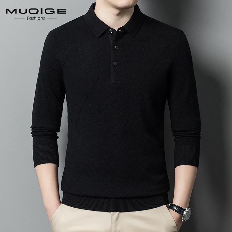 Высококачественный шерстяной свитер, зимний мужской теплый свитер из чистой шерсти, обычный толстый пуловер с воротником-футболкой, джемпер с длинными рукавами, однотонный