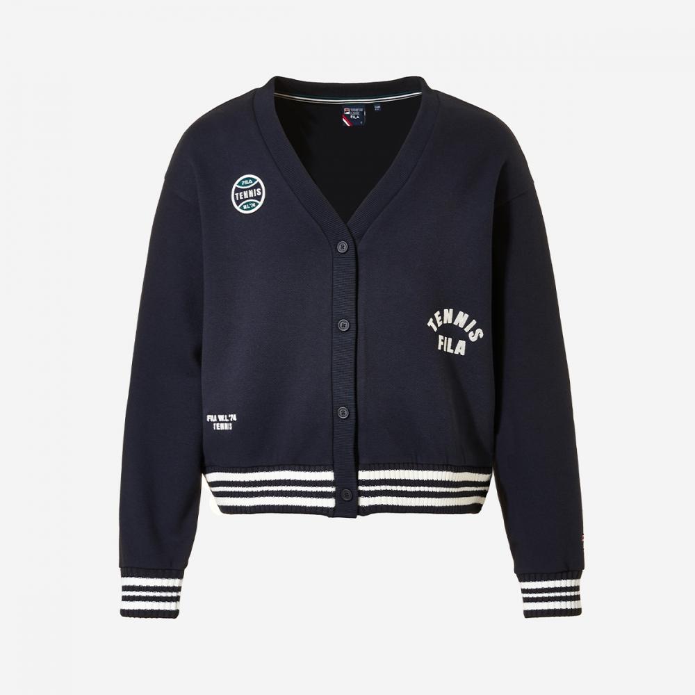 Стильный и модный женский теннисный кардиган FILA Life изготовлен из хлопка, полиэстера и акрила, что обеспечивает комфорт и воздухопроницаемость.