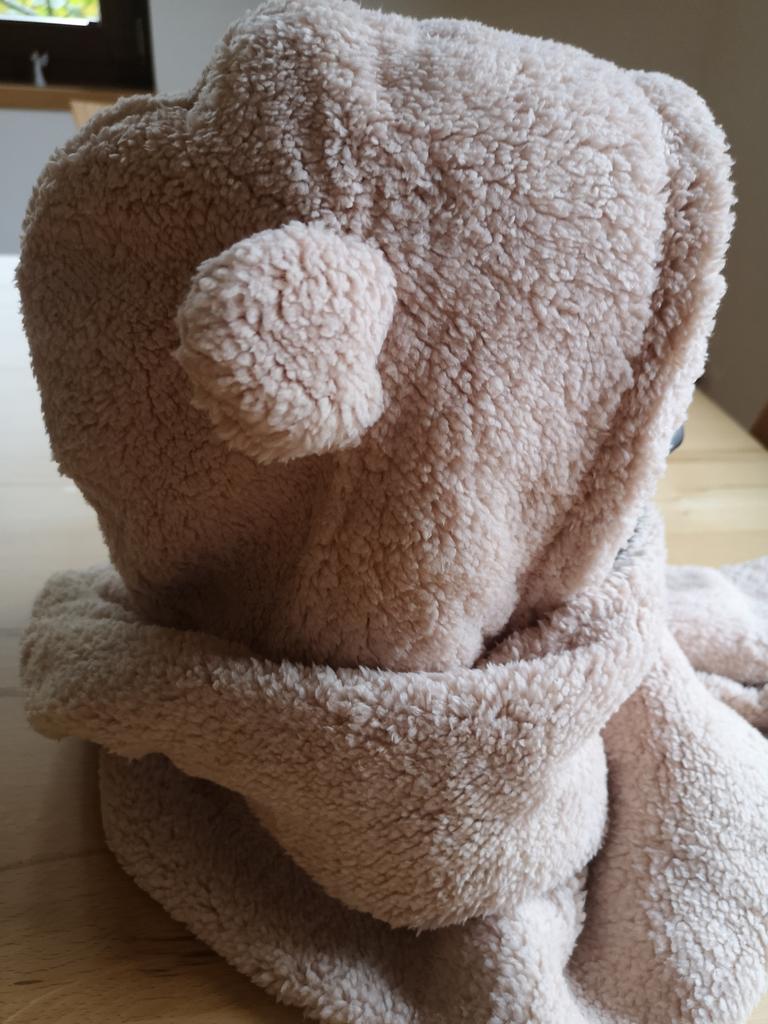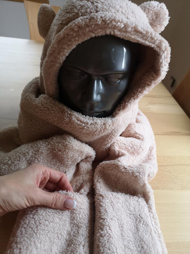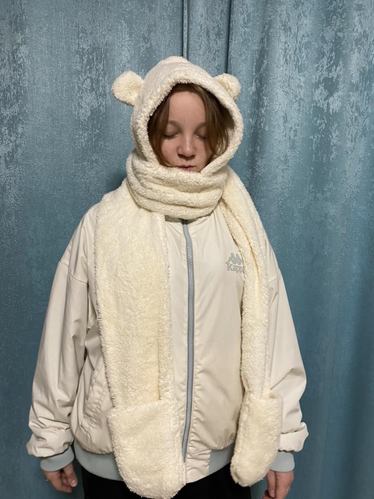 Мягкая шапка-медвежонок 🐻 На связи Ксюша 🐣 Это просто милашная прелесть 🥰 И у меня ее сразу же отжала младшая сестра… 😅 Длина короткой части шарфа — 55 см Длина длинной части шарфа — 110 см Длина части для рук — 20 см 🐻 С температурой в +6 и порывами ветра в ней тепло. Был дождь, но водой шапка не пропиталась; 🐻 Выполнена из полиэстера, напоминает мягкие махровые халаты; 🐻 Дополнительного подклада у шапки нет; 🐻 Удобно, что тут вам и шапка, и шарф, и перчатки в одном; 🐻 Одна сторона «шарфа» длиннее, чтобы было удобно обмотать вокруг шеи) Моя сестра супер довольна, так что я не очень расстроена тем, что у меня ее похитили хах