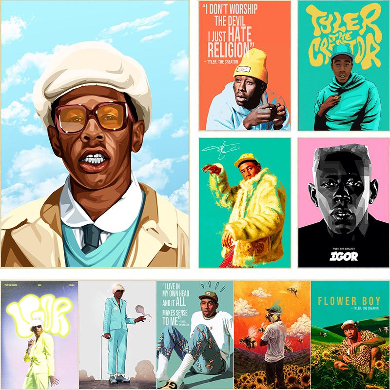 Рэпер Звезда Тайлер Создатель Цветочный мальчик Музыкальный постер Холст Картина Эстетическое настенное искусство для бара Кафе Комната Украшение дома