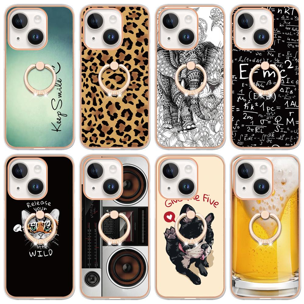 Роскошный IMD гальванический каркас противоударный чехол из ТПУ для телефона с металлическим кольцом-подставкой для iPhone 11 12 13 14 Pro Max 15 15 Ultra 15Plus
