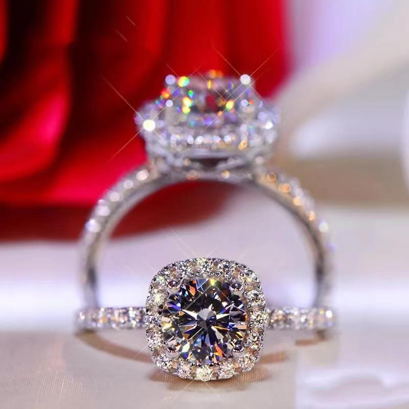Модное квадратное кольцо с настоящим муассанитом 1 карат из чистого серебра 925 пробы для женщин, ювелирные украшения, свадебный подарок RI014