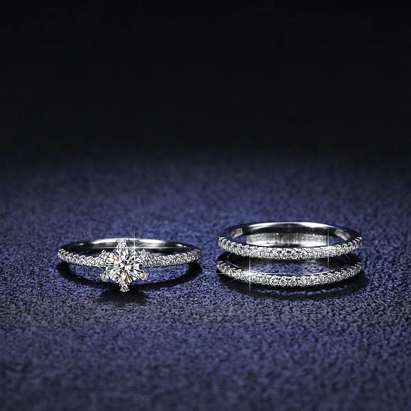 Модное трехрядное кольцо с настоящим муассанитом и бриллиантом из чистого серебра 925 пробы, позолоченное 18-каратное серебро для женщин, свадебные ювелирные украшения