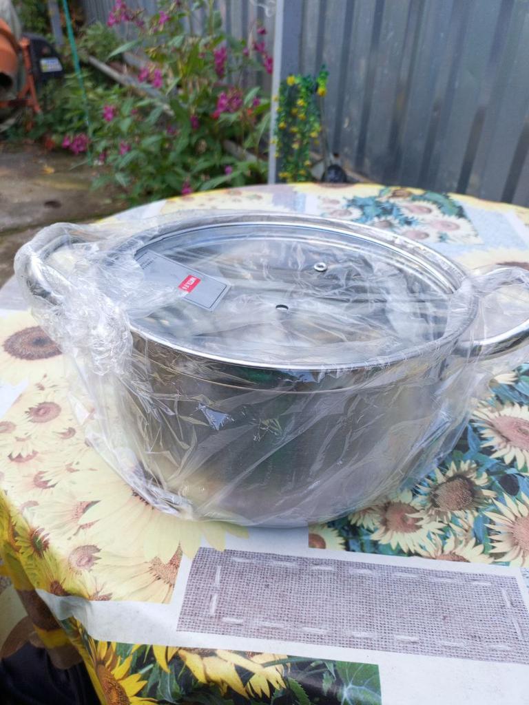 Упаковка мятая. Кастрюля тонковатая. Но крышка легко собиралась.
