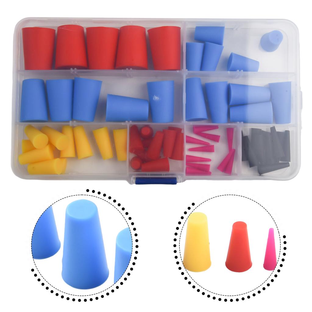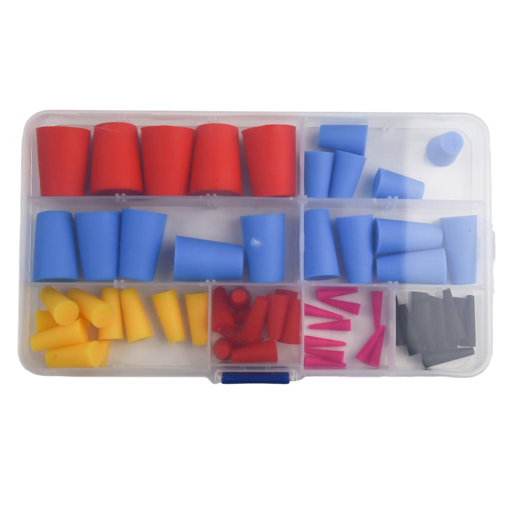 * Доступные в розовом, черном, красном, желтом и синем цветах, эти 60 конических заглушек выпускаются в 8 различных размерах, чтобы соответствовать любому резьбовому или нерезьбовому отверстию от 1/16 дюйма до 5/8 дюйма. Они широко используются в строительстве, электронике, автомобилестроении, механических мастерских, лабораториях и многом другом.