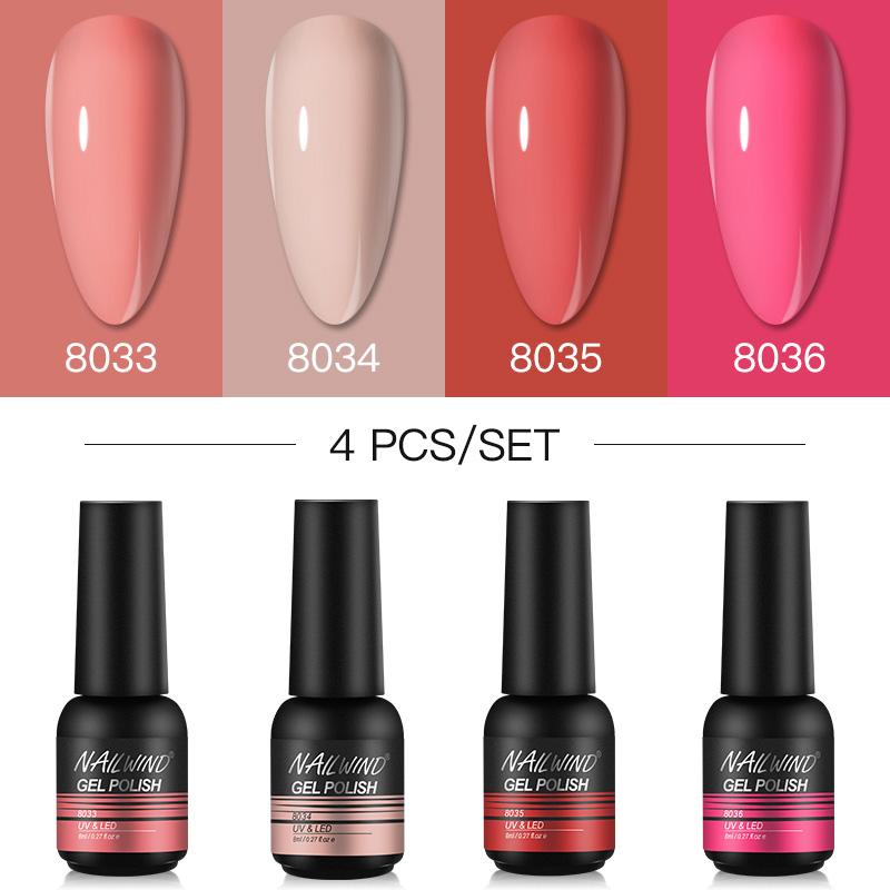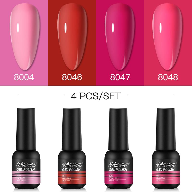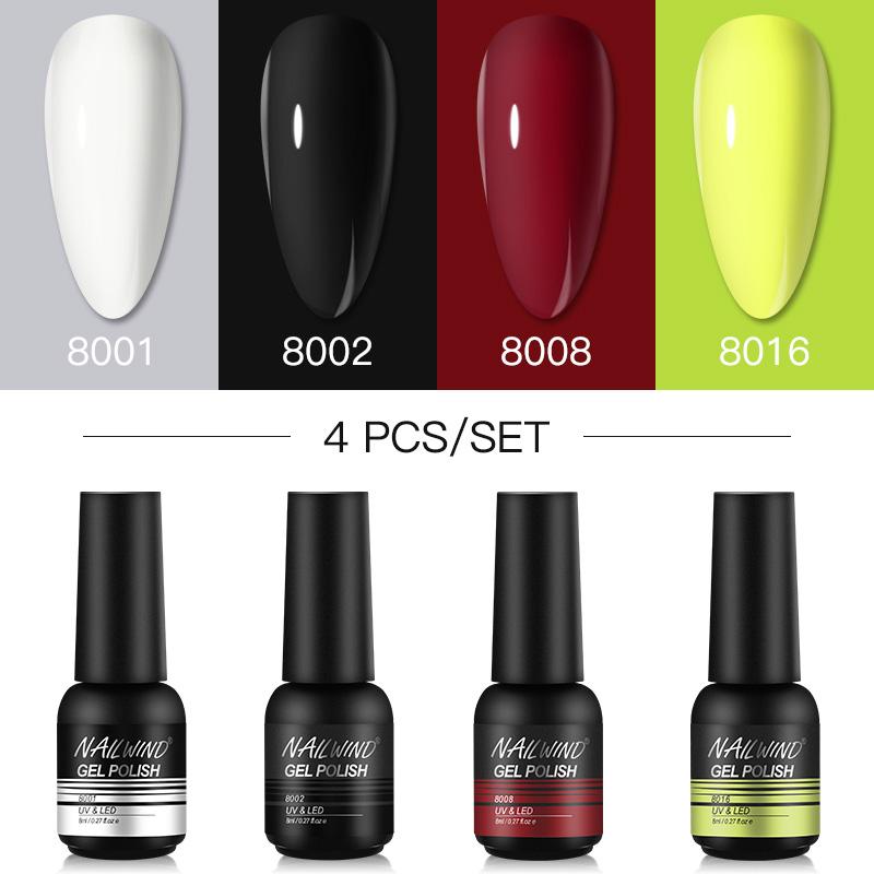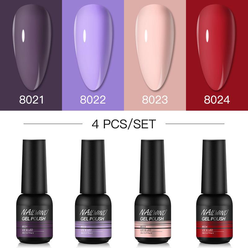 Nailiwind 8 мл 4 шт. Набор гелей для ногтей Soak Off UV Gel Polish Set Гибридные лаки Гель-лак для ногтей Маникюрный набор