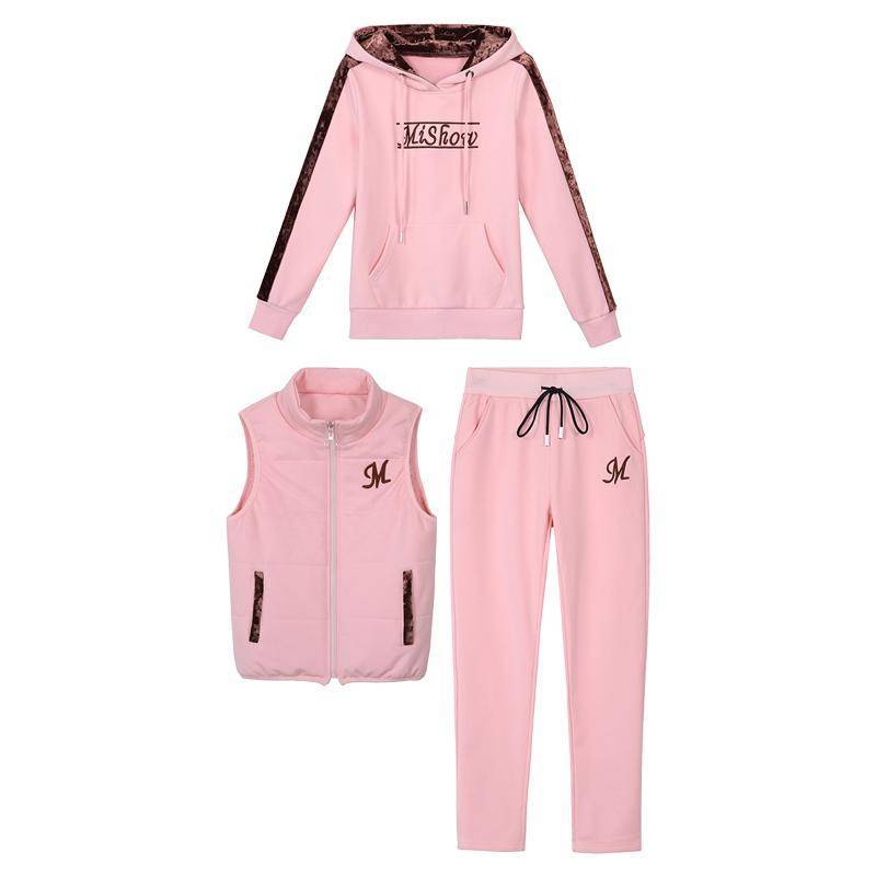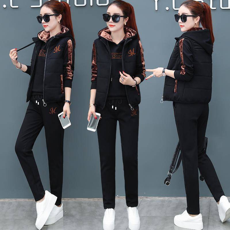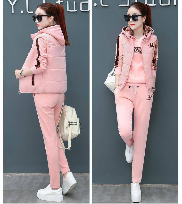 Женский утолщенный спортивный костюм из 3 предметов, жилет с капюшоном, спортивные штаны, осенне-зимний спортивный костюм