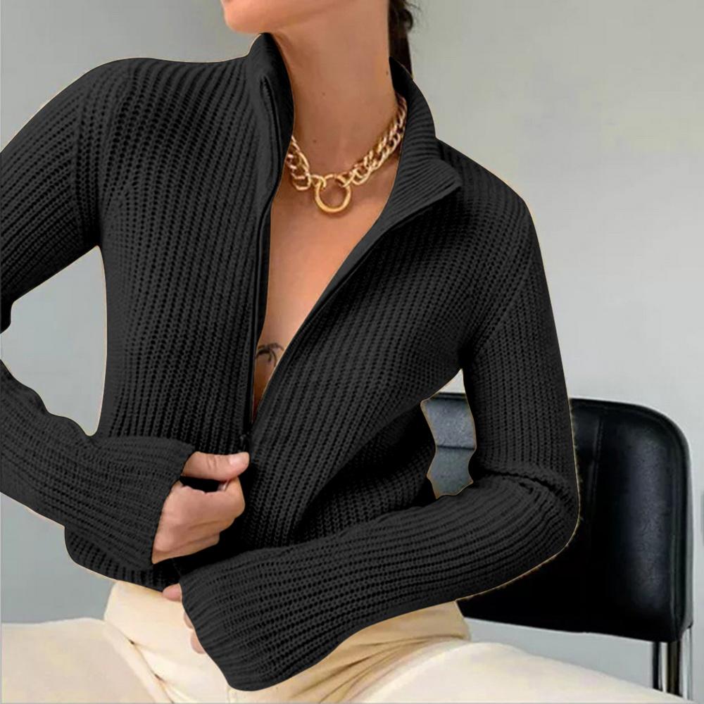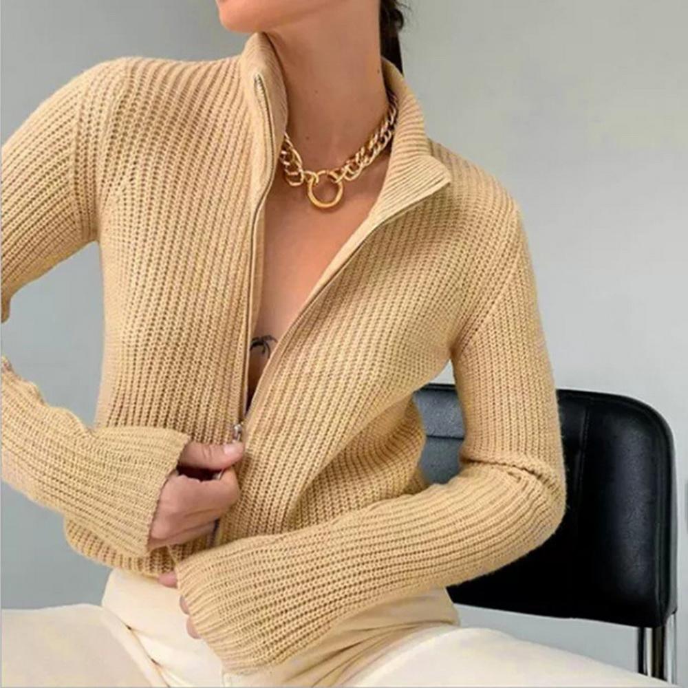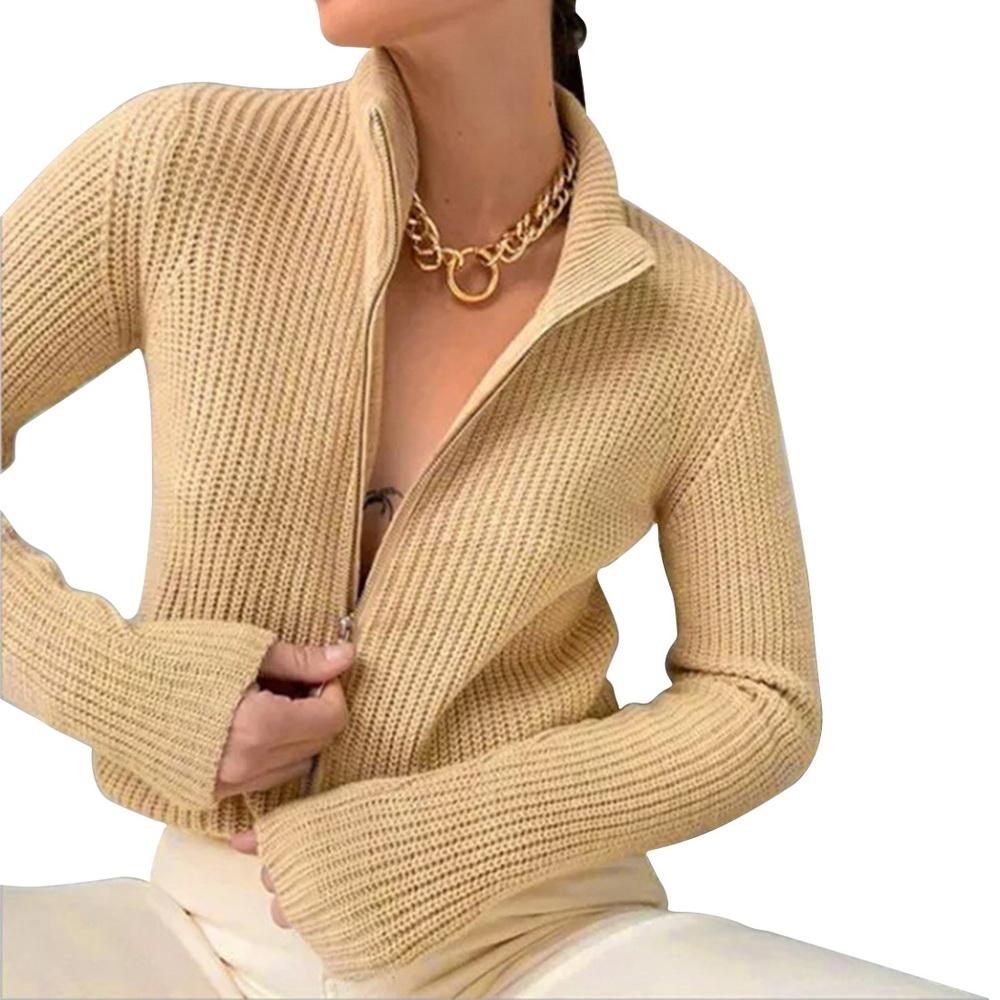Осенний утепленный вязаный кардиган на молнии для женщин, зимний короткий свитер, кардиган, женская полуводолазка, свободная верхняя одежда
