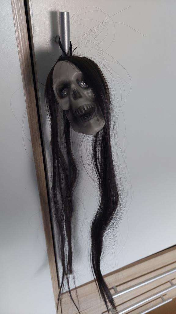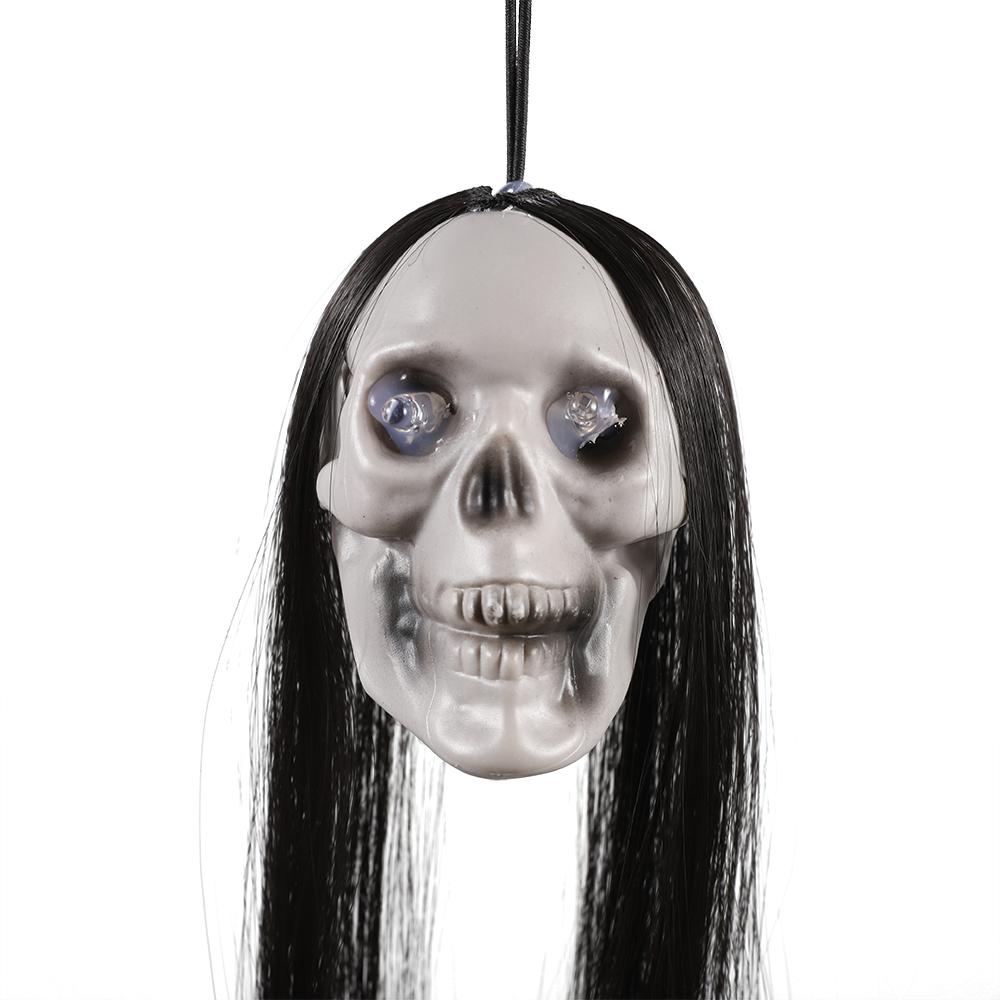 Хэллоуин Висячий Призрачный Череп с Длинными Волосами Светящиеся Глаза Ужасный Череп Призрачный Дом Голова Скелет Реквизит 2023 Украшение Хэллоуина
