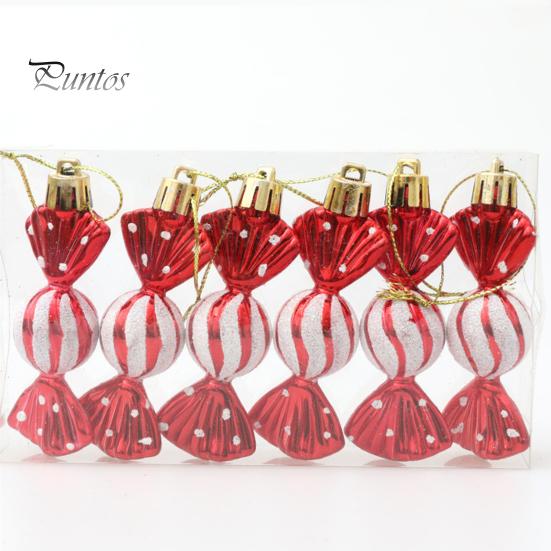 6 шт./кор. рождественские подвесные конфеты-орнаменты со шнурком, небьющиеся многоразовые гальванические праздничные украшения, рождественская елка, маленький сладкий кулон
