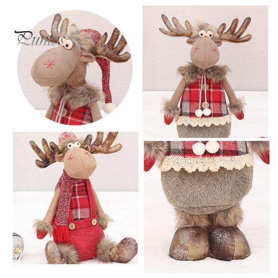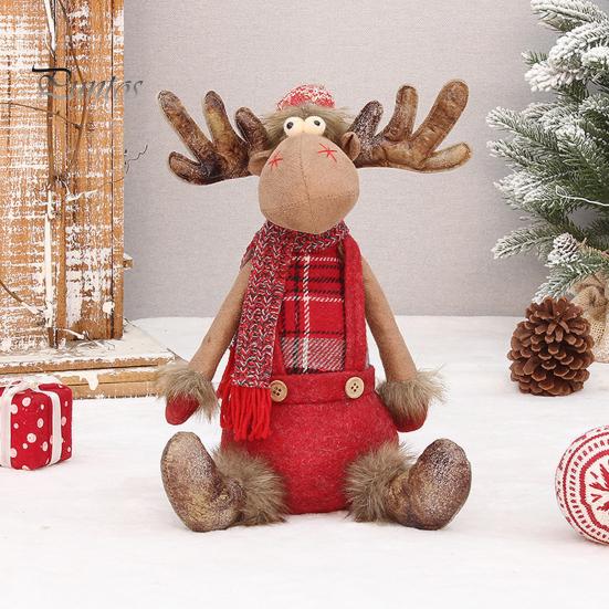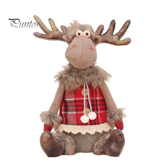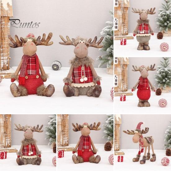 35 СМ Рождественский Лось Кукла Очаровательный Красный Плед Ручной Работы Сидя Стоя Праздничное Украшение Настольный Плюшевый Олень Фаршированный Орнамент Рождественский Подарок