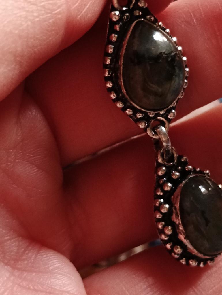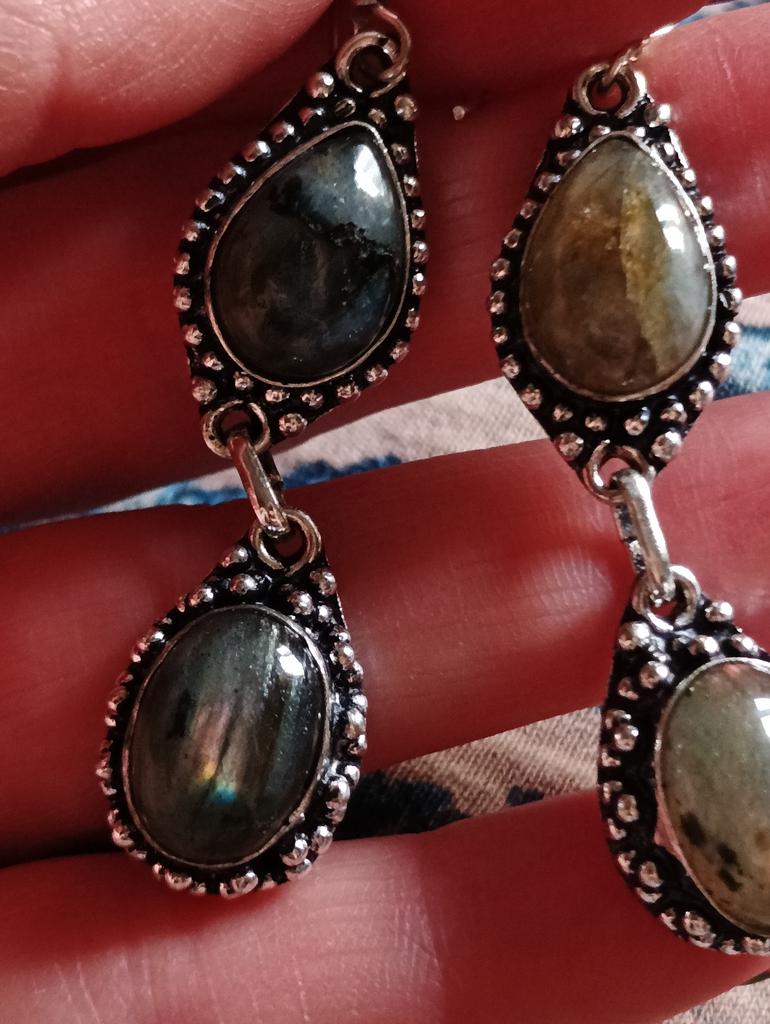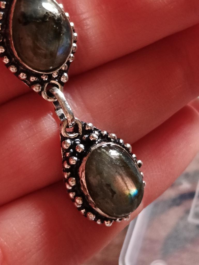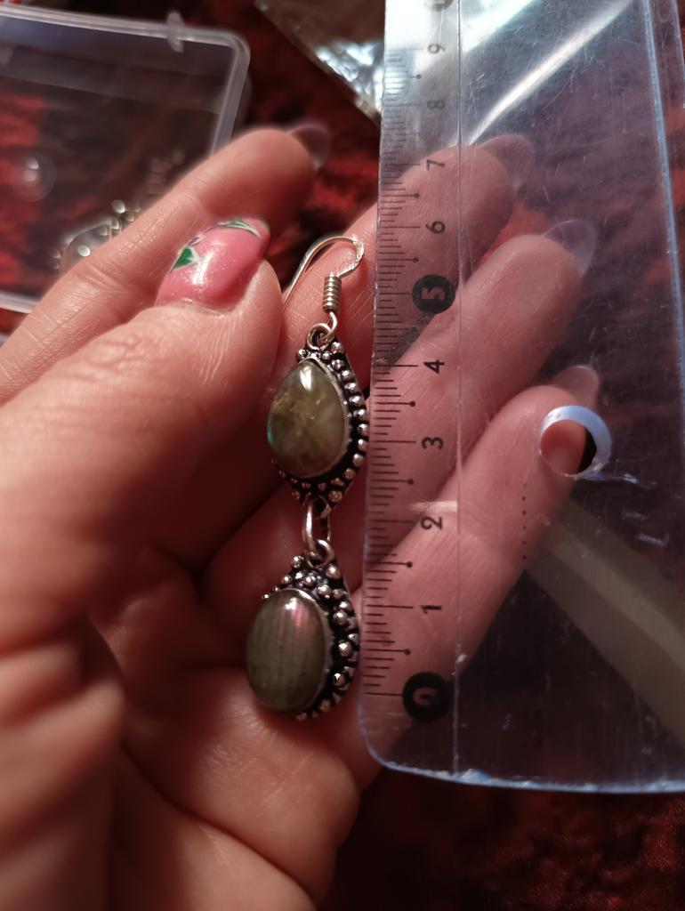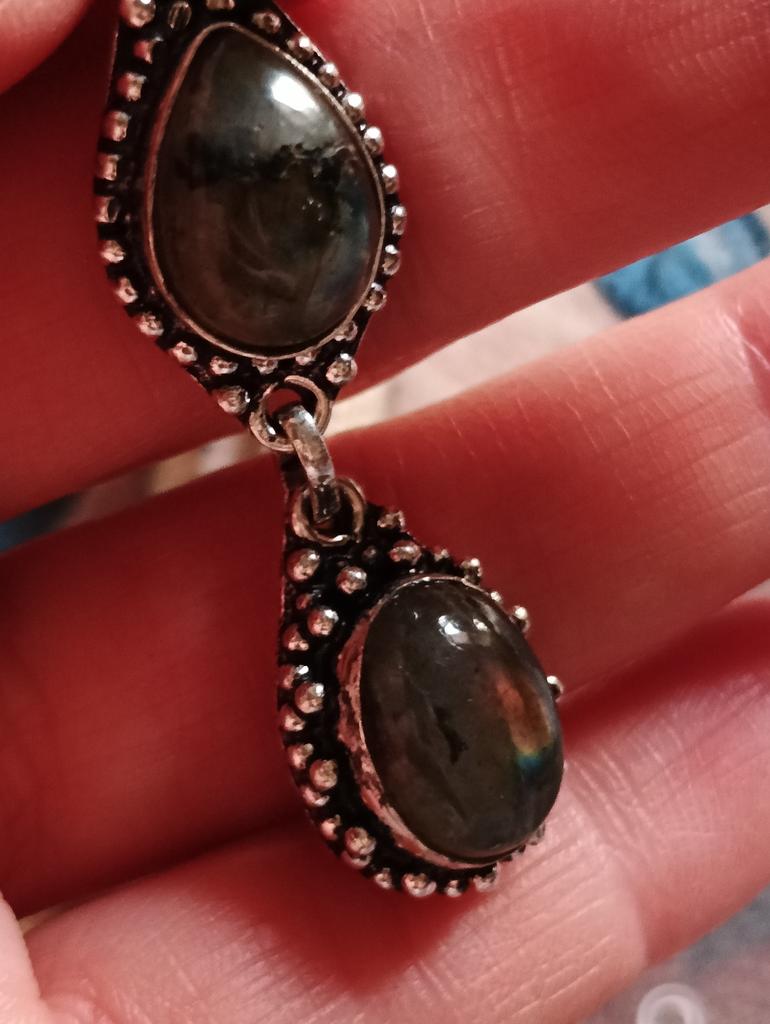 Очень красивые серьги. Камни переливаются внутренними гранями, эффект лабрадоресценции есть.. камни непрозрачные, в основном зелено-синих тонов, красиво.. Оправа красивая, серебряная, штамп стоит, но сами душки тонковаты и легко гнутся.. надо будет что-то придумать для закрепления, чтобы не потерять при носке.. Серьги понравились. К покупке рекомендую